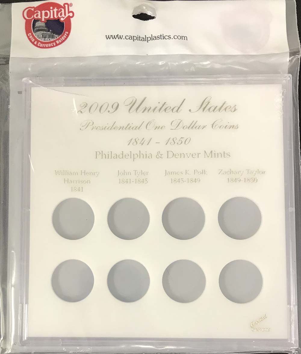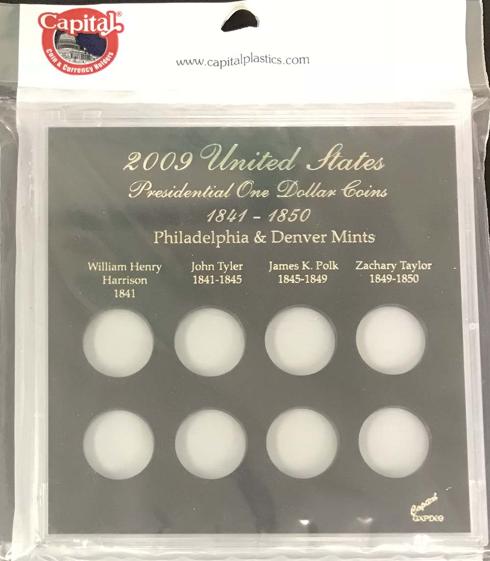 Capital Plastics offers the largest selection of premium coin holders of any available brand. This is Capital's Galaxy style snap together holder with eight holes for P-mint and D-mint versions of the Presidential Dollars issued in 2009.