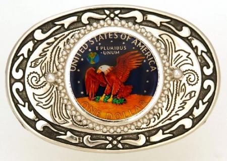 Hand Painted Eisenhower Dollar (Reverse) Belt Buckle