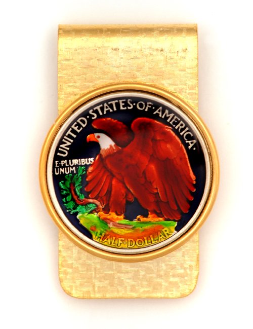 Hand Painted Walking Liberty Half Dollar (Reverse) Money Clip