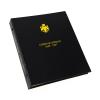 This attractive album as a deep brown colored binder with bright metallic gold imprint on the cover and the spine. The interior of the album is tan colored with black printing on both the pages and the inside covers. The pages feature clear acetate slides that cover and protect both sides of the coins while still allowing them to be viewed. The inside back cover has mintage information for the coins included in the album.