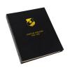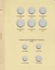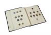 This attractive album as a deep brown colored binder with bright metallic gold imprint on the cover and the spine. The interior of the album is tan colored with black printing on both the pages and the inside covers. The pages feature clear acetate slides that cover and protect both sides of the coins while still allowing them to be viewed. The inside back cover has mintage information for the coins included in the album.
