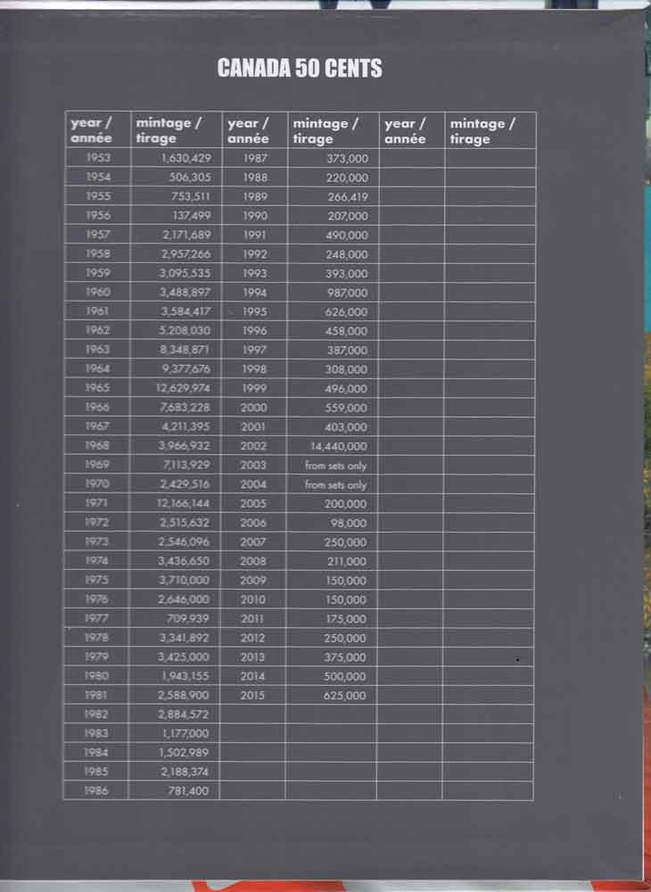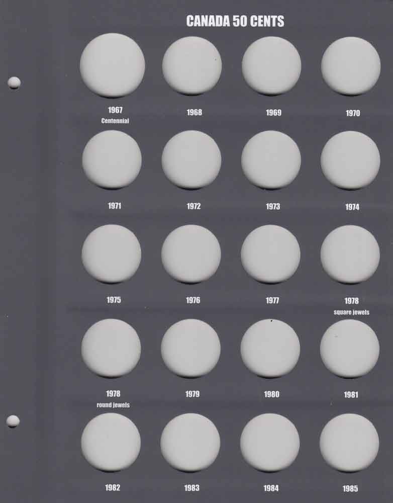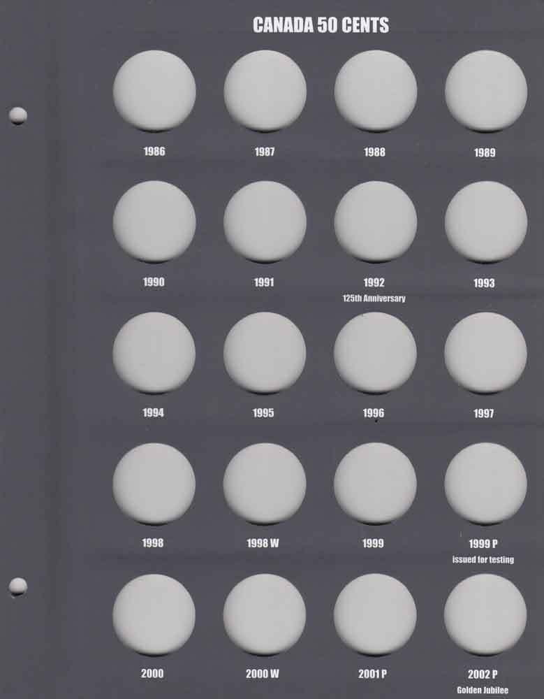 Lighthouse Vista Book Coin Albums have a laminated cover featuring stunning images of Canadian nature. The popular VISTA storage system with clear sliding inserts (free from acids and chemical softeners) is safe and easy to use. Includes many interesting coin facts and mintage information on the inside covers. This album covers Canadian Half Dollars from 1953 to Date. Holes are numbered through 2016 and there are three additional unlabeled holes (see images for details). To add additional capacity, use Lighthouse Vista Book Canada Blank Page -- Silver 50 Cent or Lighthouse Vista Book Canada Blank Page -- Nickel 50 Cent. Other matching albums are available for a wide range of Canadian circulation coin series.