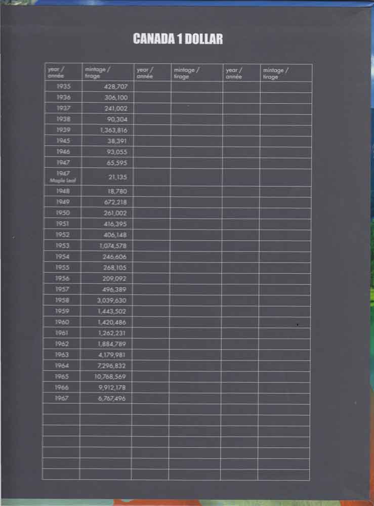 Lighthouse Vista Book Coin Albums have a laminated cover featuring stunning images of Canadian nature. The popular VISTA storage system with clear sliding inserts (free from acids and chemical softeners) is safe and easy to use. Includes many interesting coin facts and mintage information on the inside covers. This album covers Canadian Silver Dollars from 1935 to 1967. To add additional capacity, use Lighthouse Vista Book Canada Blank Page -- Silver 1 Dollar. Other matching albums are available for a wide range of Canadian circulation coin series.