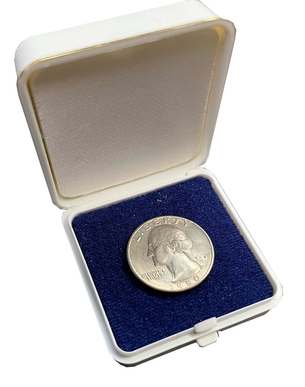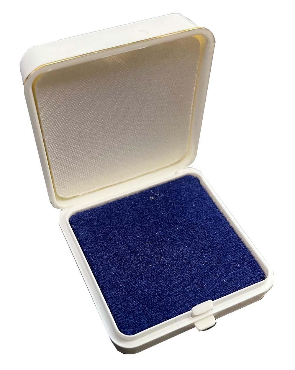 Prinz Patent Cases have a special "press in" style memory foam inlay, allowing you to securely place your coin into the case by pressing it into the inlay. A recess is formed in the inlay matching exactly with your coin. The inlay is permanent so carefully determine the exact desired location before pressing. Ideal for coins in capsules and odd-sized or odd-shaped pieces. This allows for a customized display box for almost any small item. White hard plastic outer shell case with contrasting blue inlay and white satin covered foam puff in lid. Note: Patent Cases are not returnable if the the memory foam has been indented. Resist the temptation to test it with your figure and make sure your objects are correctly positioned before pressing.