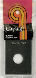 Capital Plastics offers the largest selection of premium coin holders of any available brand. The 3.3x3.3 style holder is vest pocket sized and made of clear molded plastic pieces that snap together around a black or white core with gold printing. It has a double gold border around the edge.