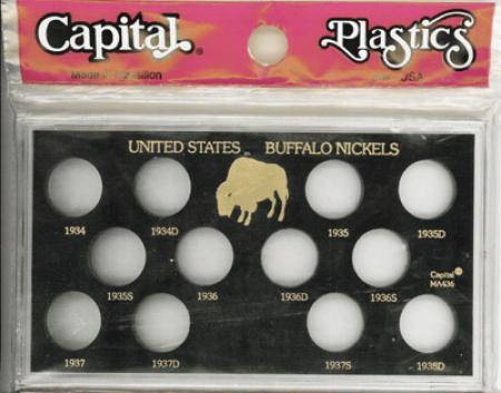 Capital Plastics offers the largest selection of premium coin holders of any available brand. This holder has 12 holes for the Buffalo Nickel short set from 1934 to 1938-D.