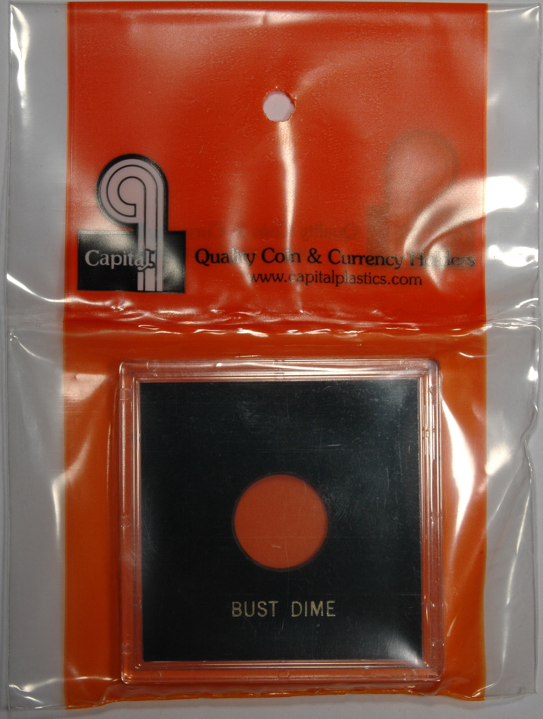 Capital Plastics offers the largest selection of premium coin holders of any available brand. The 2.5x2.5 style holder is made of clear molded plastic pieces that snap together around a black or white core with gold printing.