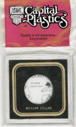 Capital Plastics offers the largest selection of premium coin holders of any available brand. The 2x3 style holder is made of clear molded plastic pieces that snap together around a black or white core with gold printing. It is sized similar to a slab and includes space at the top for a label.