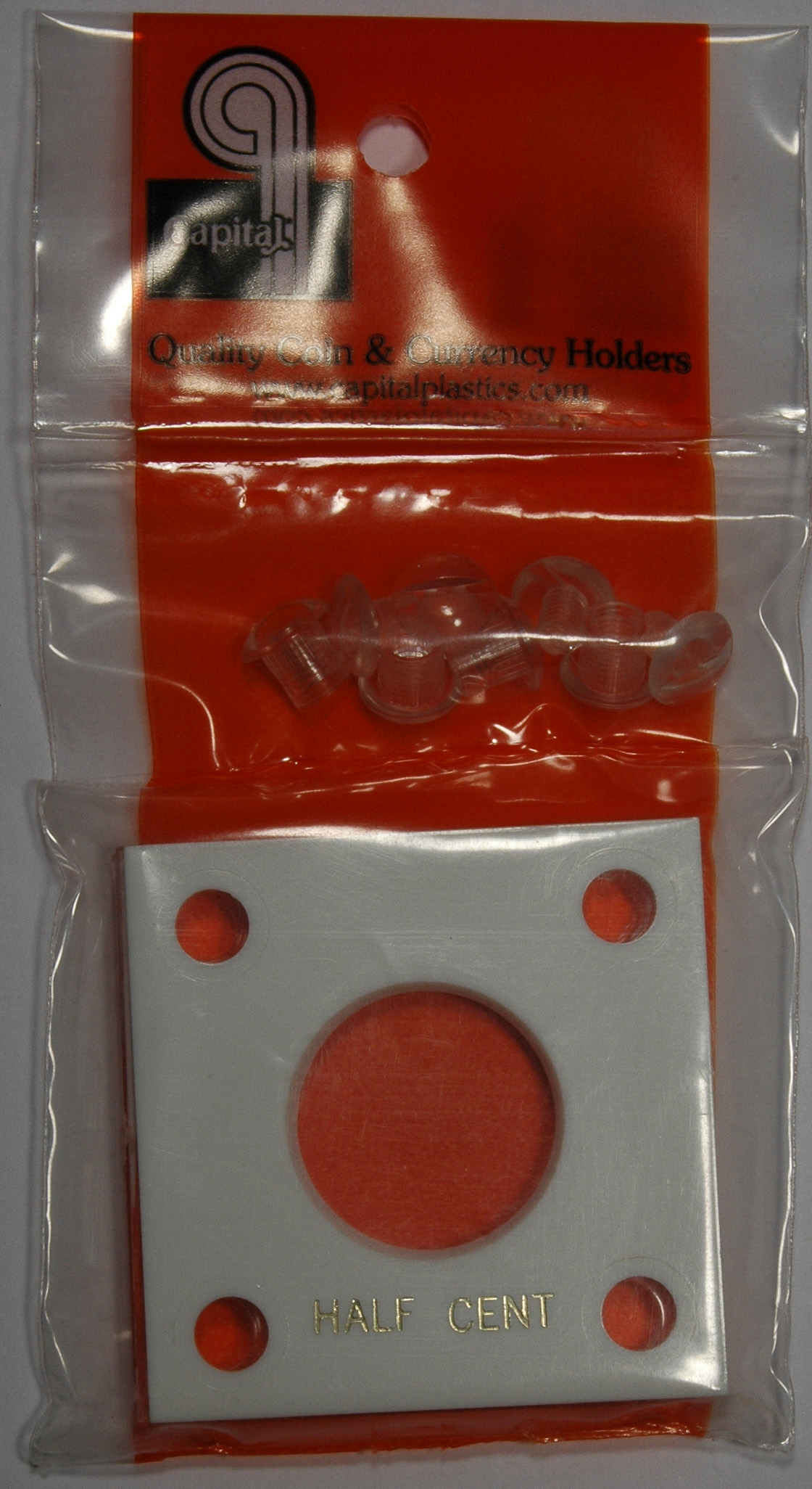 Capital Plastics offers the largest selection of premium coin holders of any available brand. These 2x2 sized holders come in either black or white finish and have gold printing. The 2x2 style holder is three layers of plastic held together with screws.