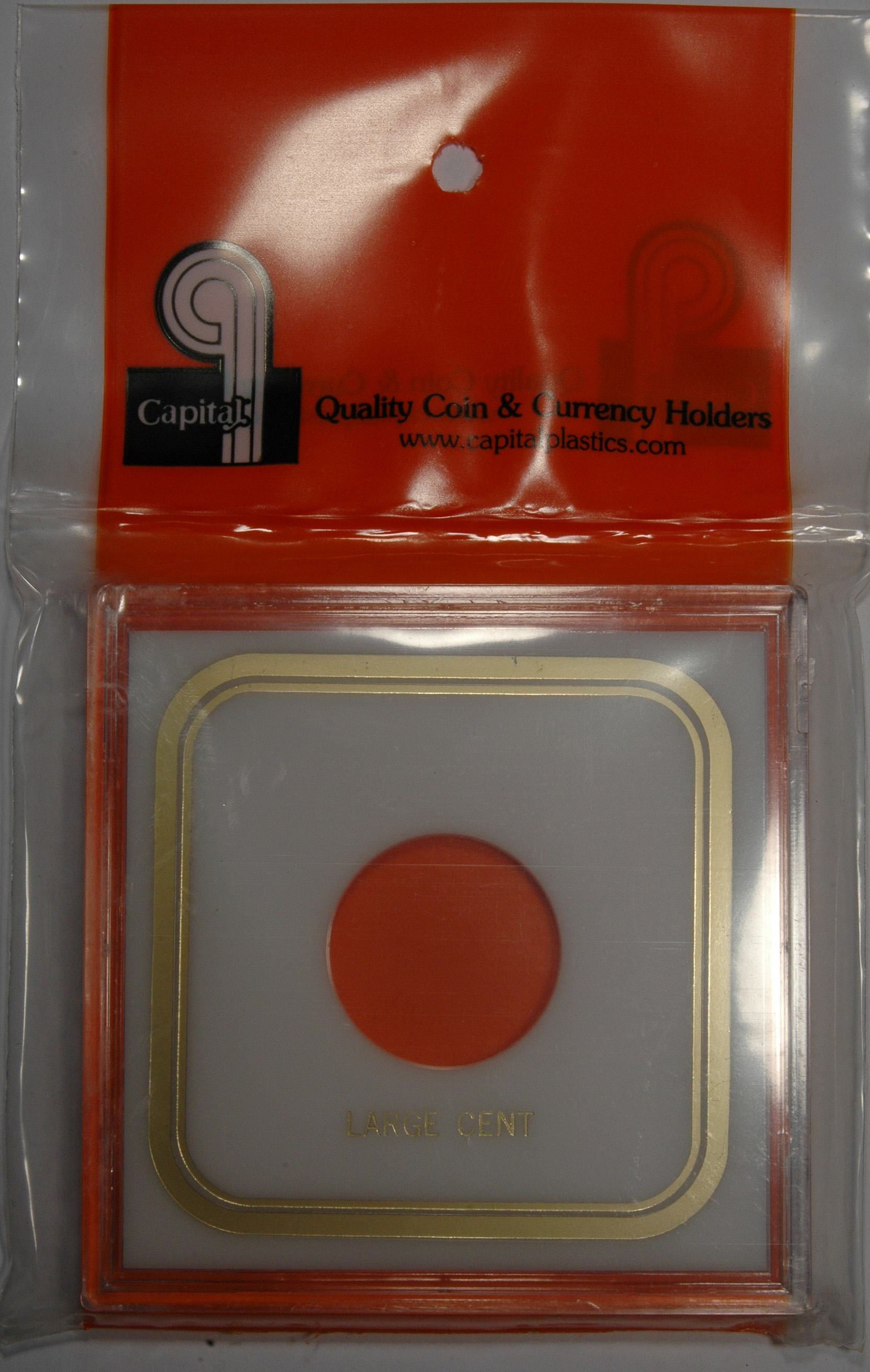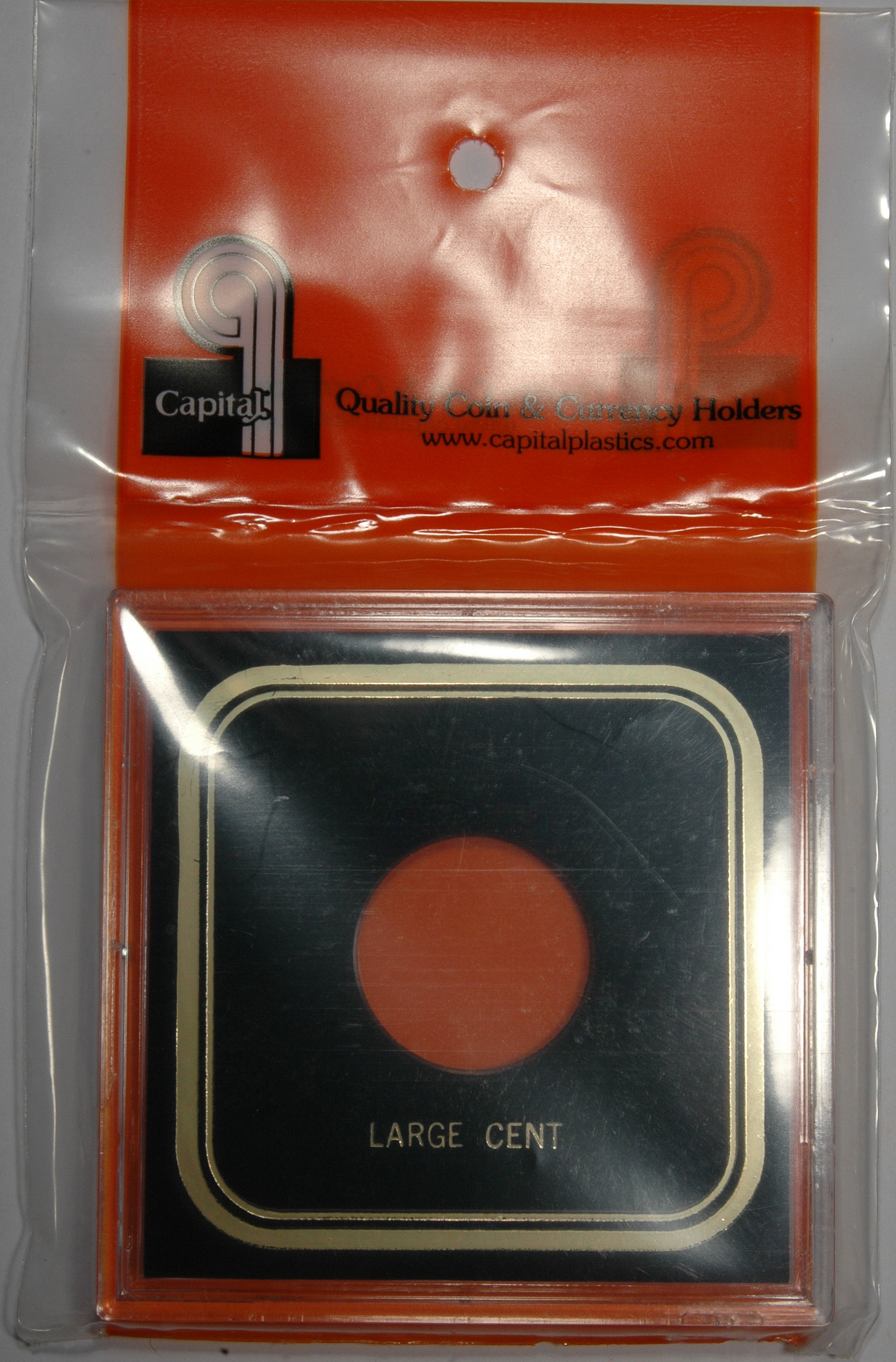 Capital Plastics offers the largest selection of premium coin holders of any available brand. The 3.3x3.3 style holder is vest pocket sized and made of clear molded plastic pieces that snap together around a black or white core with gold printing. It has a double gold border around the edge.