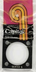 Capital Plastics offers the largest selection of premium coin holders of any available brand. The 3.3x3.3 style holder is vest pocket sized and made of clear molded plastic pieces that snap together around a black or white core with gold printing. It has a double gold border around the edge.