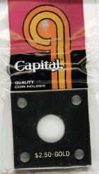 Capital Plastics offers the largest selection of premium coin holders of any available brand. The 3.3x3.3 style holder is vest pocket sized and made of clear molded plastic pieces that snap together around a black or white core with gold printing. It has a double gold border around the edge.