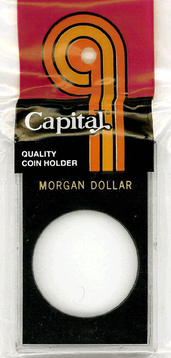 Capital Plastics offers the largest selection of premium coin holders of any available brand. The 2x3 style holder is made of clear molded plastic pieces that snap together around a black or white core with gold printing. It is sized similar to a slab and includes space at the top for a label.