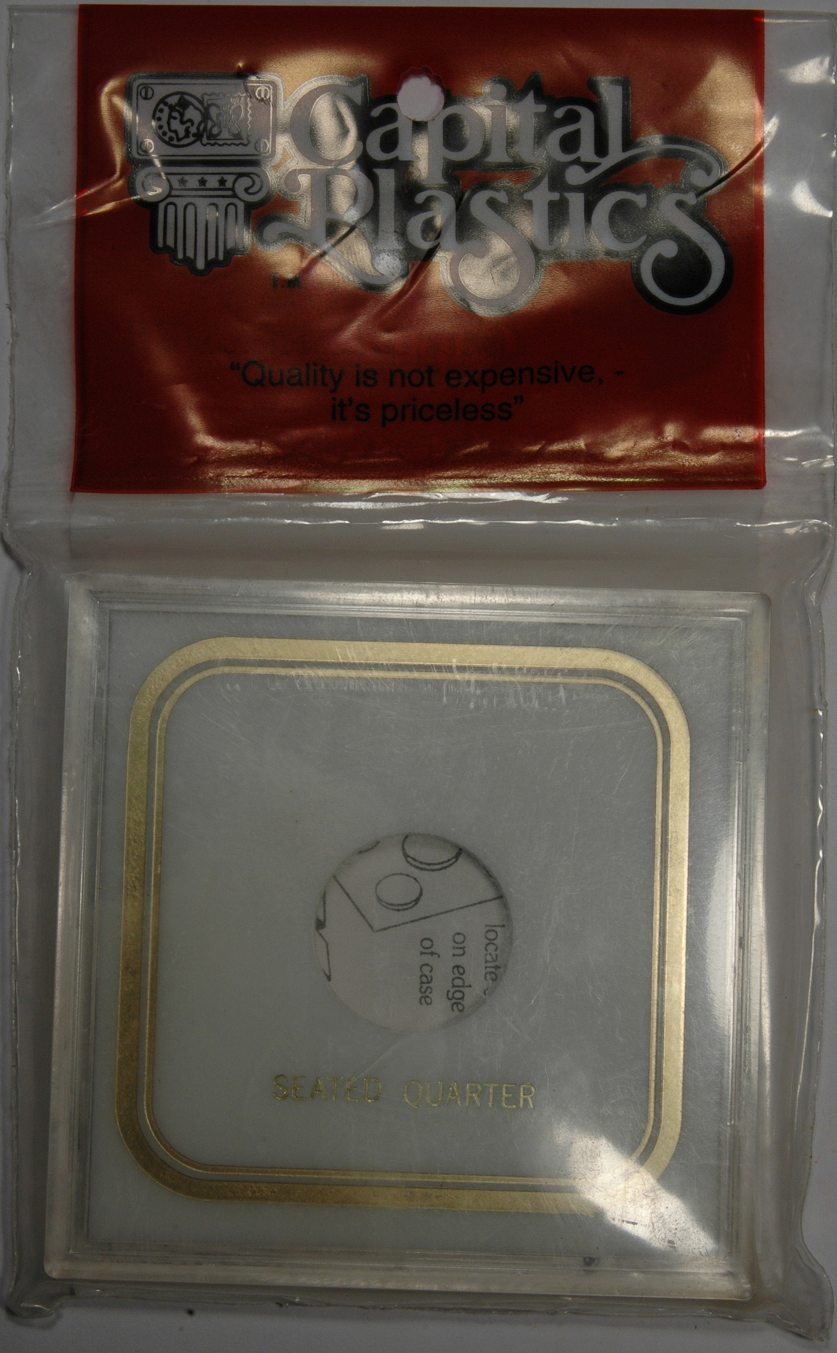 Capital Plastics offers the largest selection of premium coin holders of any available brand. The 3.3x3.3 style holder is vest pocket sized and made of clear molded plastic pieces that snap together around a black or white core with gold printing. It has a double gold border around the edge.