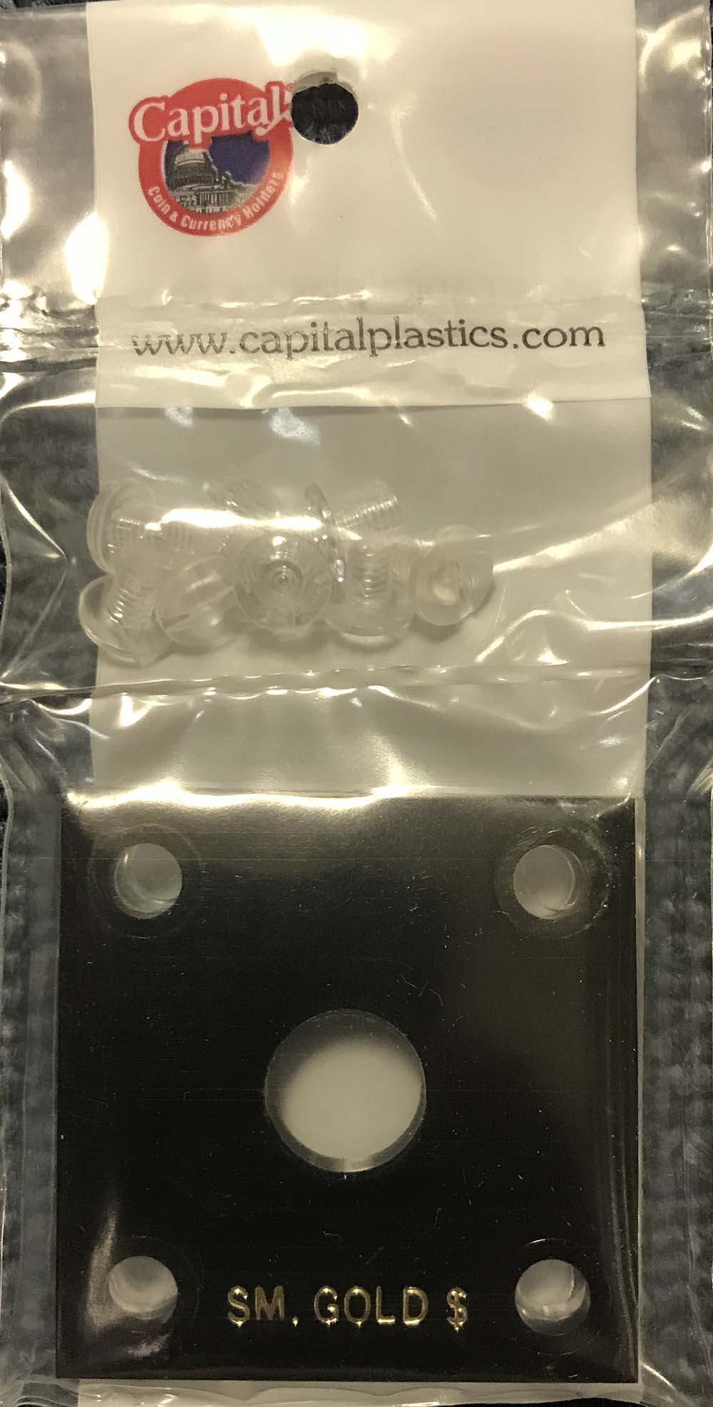 Capital Plastics offers the largest selection of premium coin holders of any available brand. These 2x2 sized holders come in either black or white finish and have gold printing. The 2x2 style holder is three layers of plastic held together with screws.