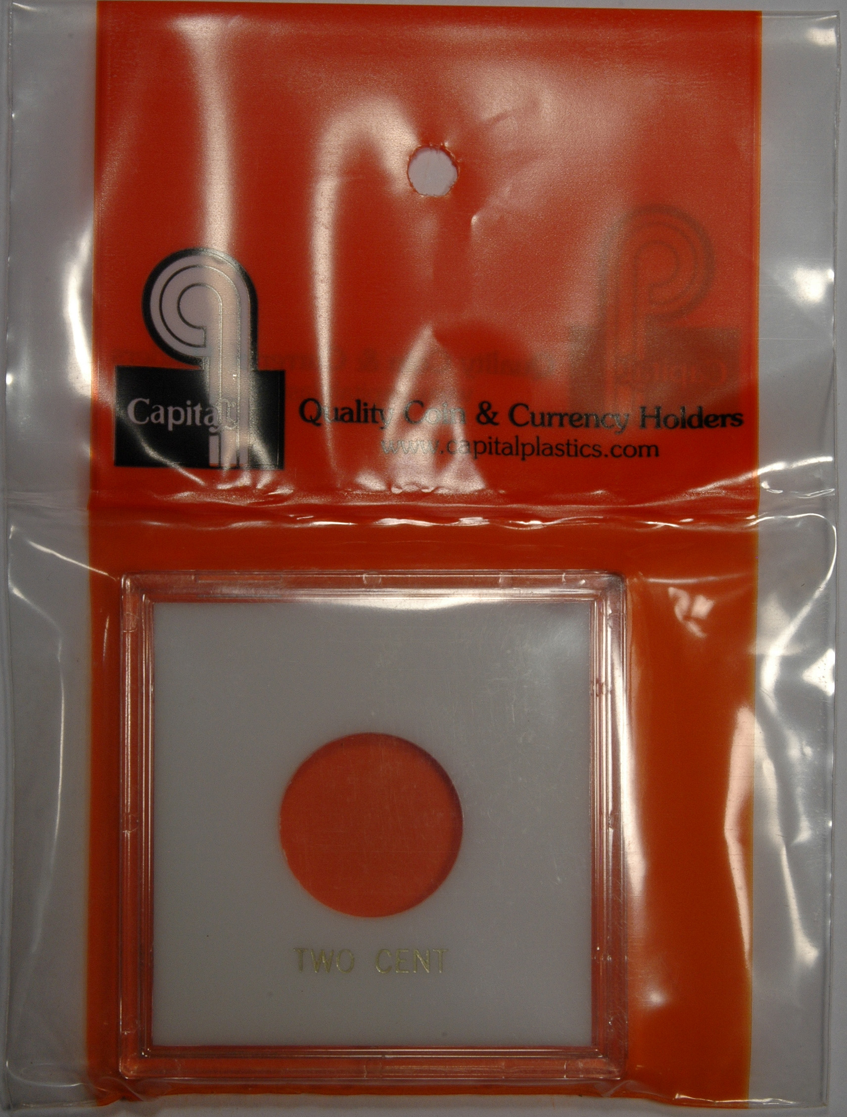 Capital Plastics offers the largest selection of premium coin holders of any available brand. The 2.5x2.5 style holder is made of clear molded plastic pieces that snap together around a black or white core with gold printing.