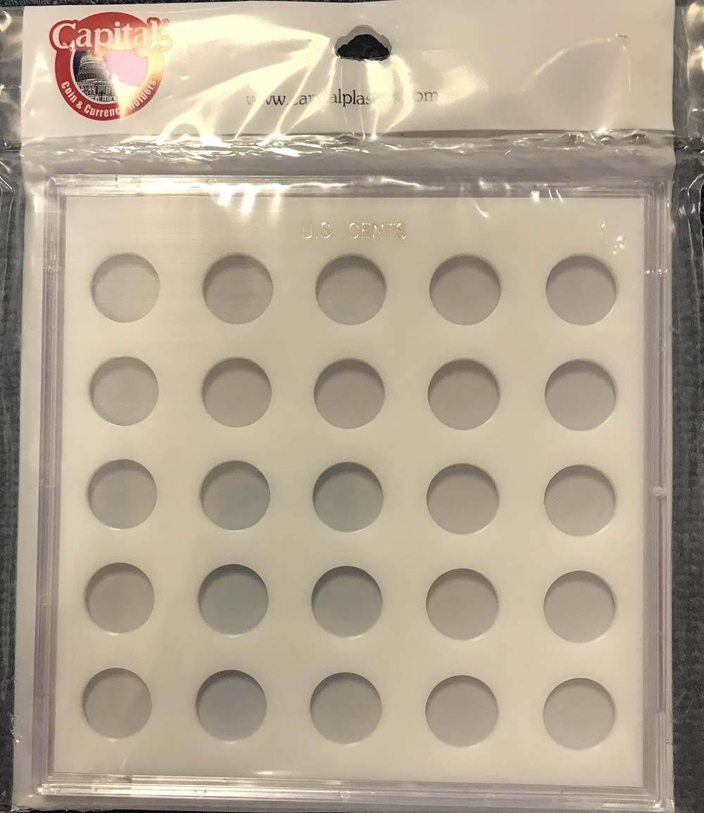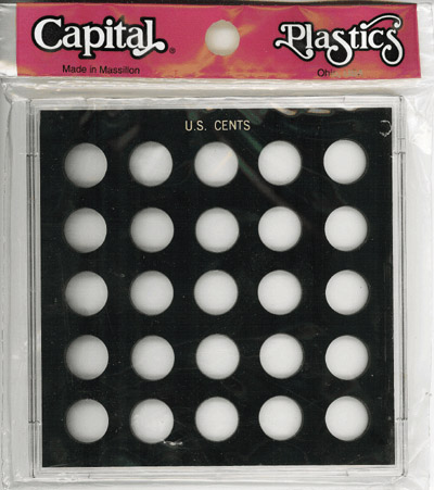 Capital Plastics offers the largest selection of premium coin holders of any available brand. This is Capital's Galaxy style snap together holder with 25 holes for small cents.