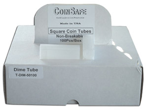 Square tubes have the advantage of not rolling when on their side and fit better in boxes (especially if the boxes do not have interior partitions to hold tubes in their place). Square tubes feature snap on lids rather than the screw-on threaded lids used on round tubes. Coin Safe square tubes utilize Snap Tite lid technology ensuring a secure fit for the lifespan of the tube.