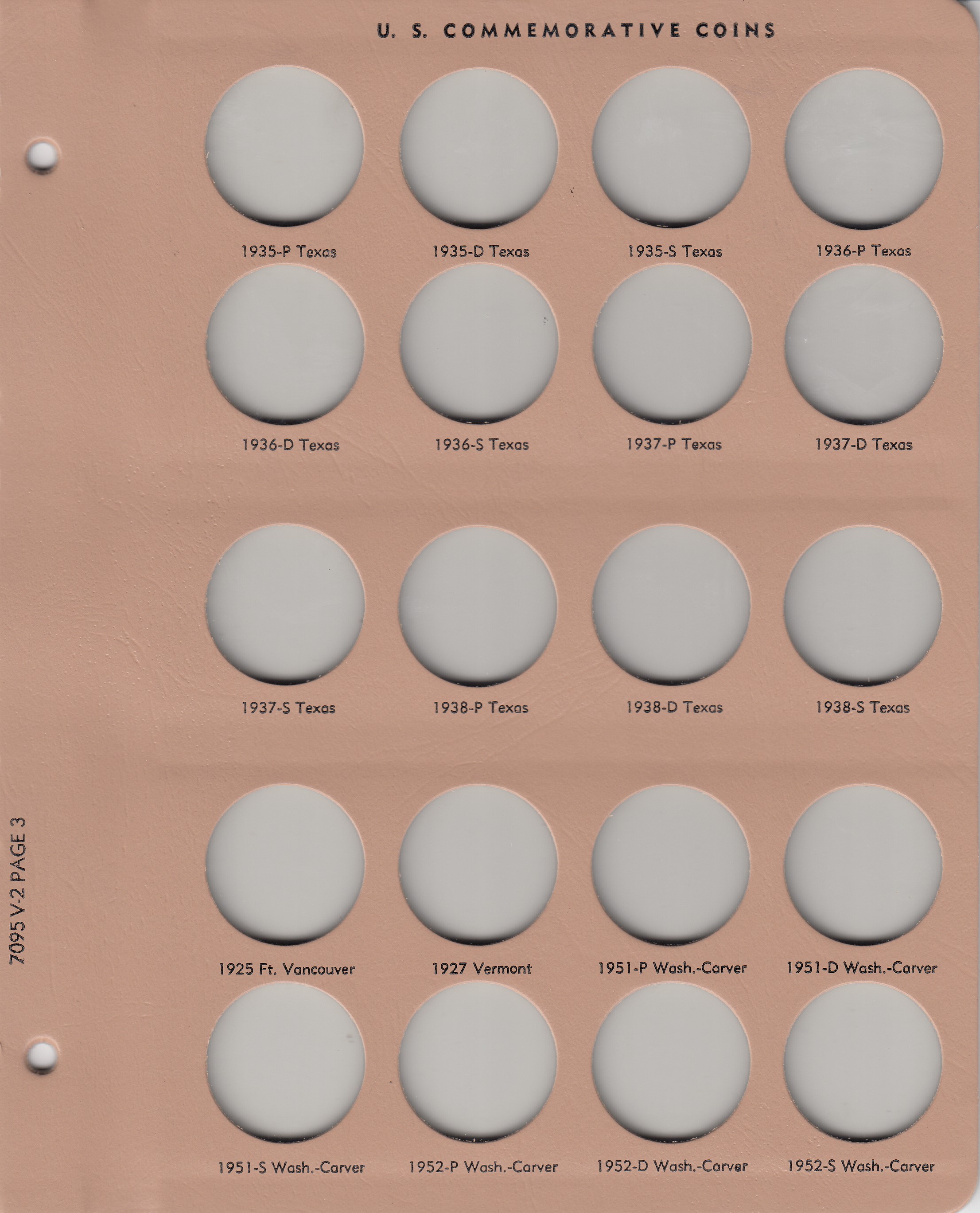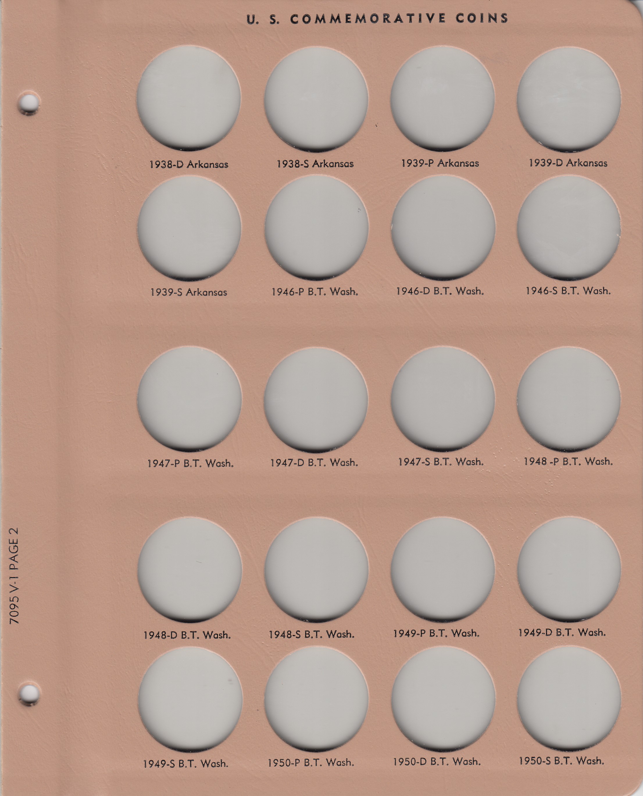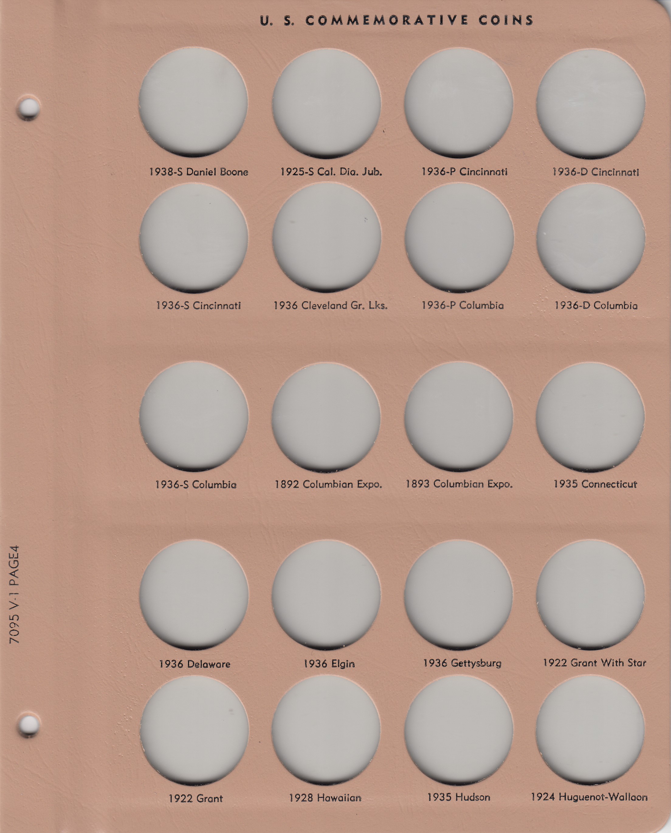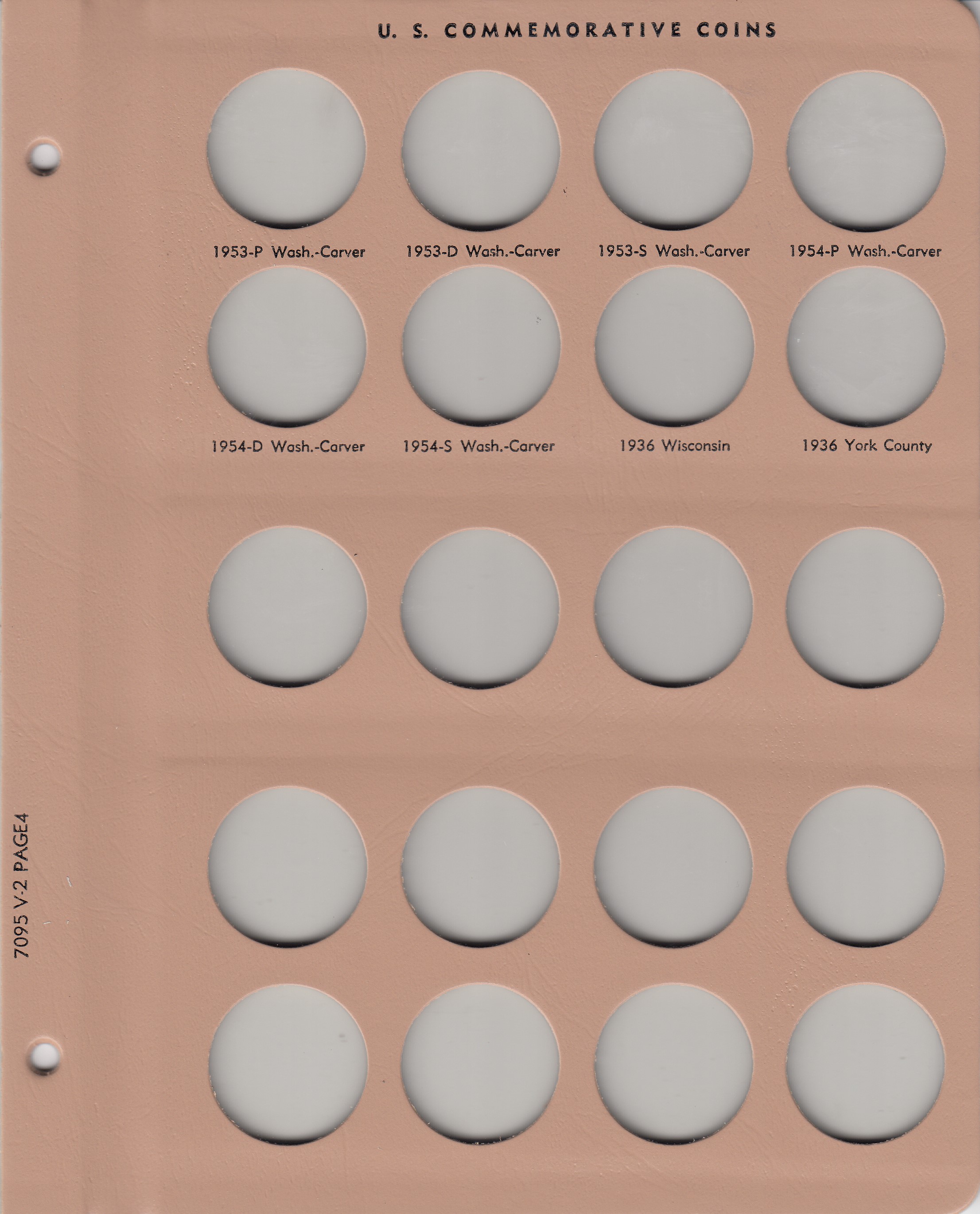 - The tan colored, loose-leaf hinged pages are plastic coated and washable with blank imprinting below the ports to properly identify coins.