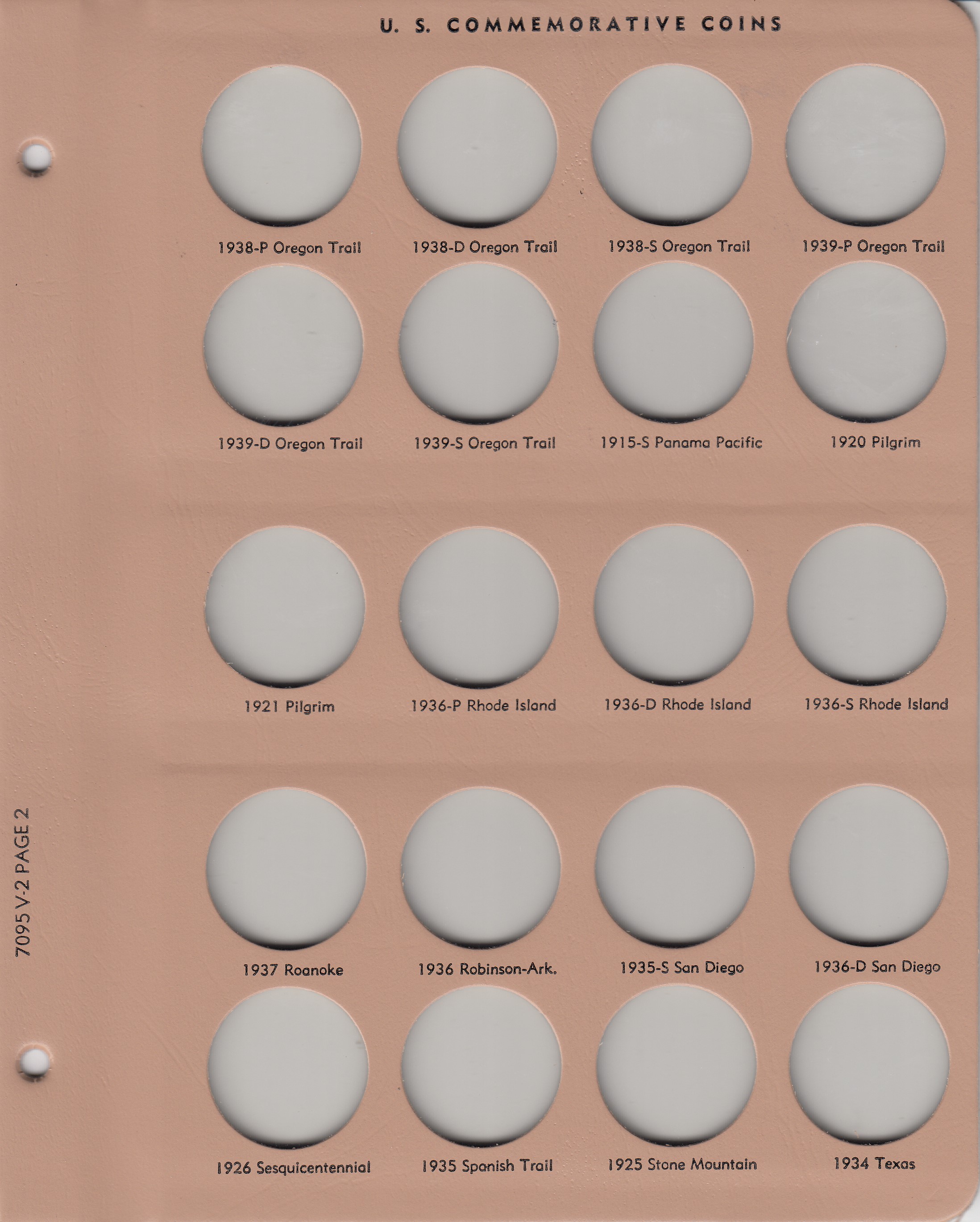 This Dansco Supreme Album for US Commemorative Type 1893-1954, 1 & 2 (Dansco model number 7095) consists of two brown leatherette binders with eight loose-leaf hinged pages. The inside front covers feature a historical summary of the classic commemorative program while the inside back covers list mintages for the series. See provided images for detailed page-by-page contents for this album. Dansco Supreme Albums are the best-selling line of coin albums due to their high-quality, complete line for virtually all US coins and the flexibility to accommodate almost any collection: