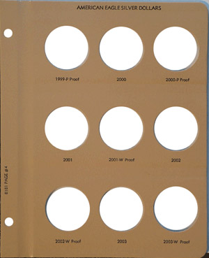 Dansco Replacement Page 8181-4: American Eagle Silver Dollars w/ Proof (1999-P to 2003-W)