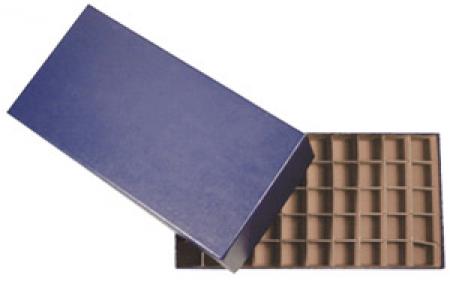 Neatly organize and store your roll collection using these heavy duty thumb cut boxes. Each box securely holds fifty tubes in thick partitions. Works for square tubes, round tubes or paper wrapped rolls.