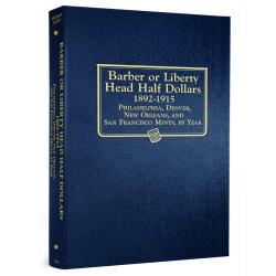 This Whitman Classic Album for US Type Coin Collection 20th and 21st Centuries (Whitman model number 3688) consists of a dark blue leatherette binder with blue loose-leaf hinged pages. Both the binder and pages are gold stamped. The pages are held in the binder with two posts that screw apart so that pages can be added, removed and replaced with ease and have thumb notches for easy window removal. The album has a data sheet with mintages and other historical information.