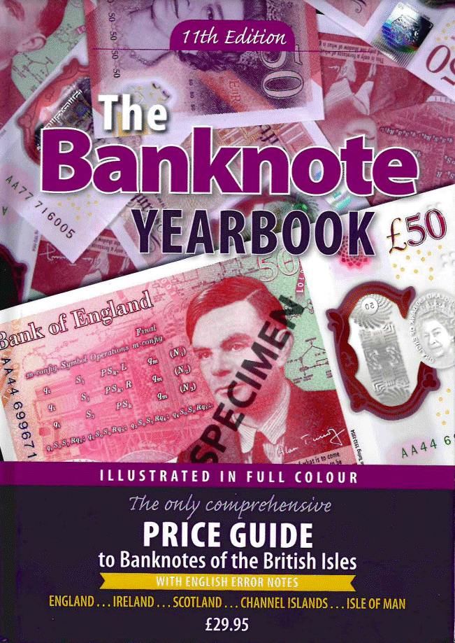 At an impressive 568 pages this hardbound book is the perfect reference for all collectors of English, Scottish, Irish and Island banknotes with all the notes of the main banks (and the early Treasury notes) covered and illustrated in full color. It includes a full price guide for all notes (most in three grades) and has been fully update in line with market movements. It also contains all the new issue notes from the past four years right up to, and including, the new polymer “Turing” £50 which features on the front cover.