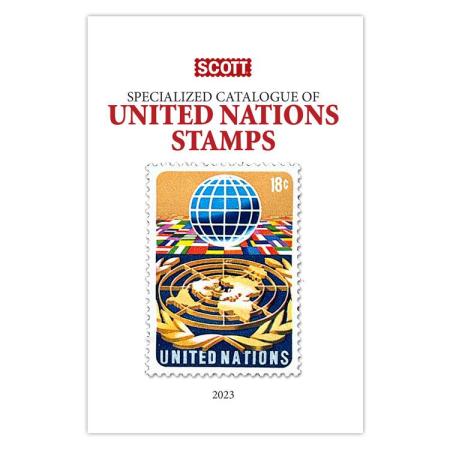 The new 2023 Scott Specialized Catalogue of United Nations Stamps is the essential reference work for collectors of United Nations postage stamps and postal history. The catalog also includes listings and values for first-day covers, inscription blocks, panes and more. Separate sections are included for the Offices in New York, Geneva and Vienna, and U.N. souvenir cards, U.N. Proofs, and U.N. Temporary Executive Authority of West New Guinea, U.N. Transitional Authority in East Timor and U.N. Interim Administration in Kosovo.