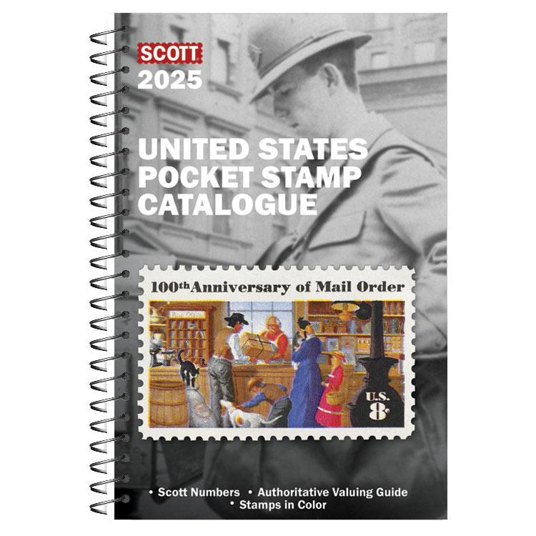 For collectors on the go, the Scott United States Pocket Stamp Catalogue offers the ease of lightweight portability combined with essential listing information and values for more than 6,000 postage stamps and selected back-of-the-book issues. The 2025 edition has been revamped to display crisp, full-color illustrations with Scott numbers and descriptions below. Handy checkboxes appear alongside catalogue values for unused and used varieties. The 2025 Scott United States Pocket Stamp Catalogue makes it easy to keep track of what you have and what you need, whether you’re at a show, perusing a dealer’s website, or relaxing at your stamp desk at home. This special pocket catalogue contains United States Postage Stamps, Semi-Postal Stamps, Air Post Stamps, Air Post Special Delivery Stamps, Special Delivery Stamps, Registration Stamp, Certified Mail Stamp, Postage Due Stamps, U.S. Offices in China, Official Stamps, Newspaper Stamps, Parcel Post Stamps, Parcel Post Postage Due Stamps, Special Handling Stamps, Computer Vended Postage. Personal Computer Postage, Non-Personalizable Postage, Carriers’ Stamps, and Hunting Permit (Duck) Stamps.