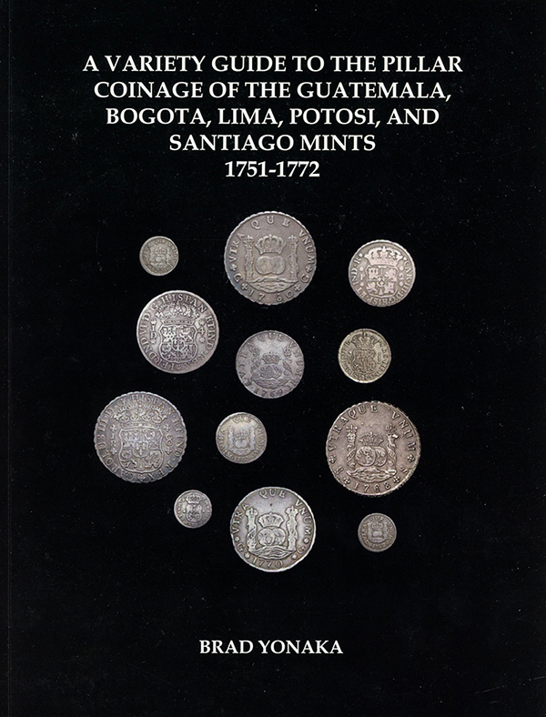 Yonaka's reference book is a well-researched variety guide and price listing of pillar coinage from 1751 to 1772 minted in Central and South America. It serves as a valuable tool for collectors to accurately identify pillar coins they encounter. The guide is organized by mint. Within the mint sections, the information is organized by denomination and by date. The detailed descriptions, photos and cross referencing for the varieties make this an invaluable reference tool for collectors and historians alike.