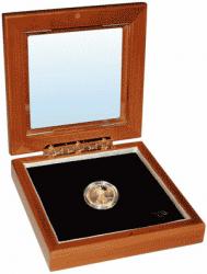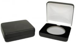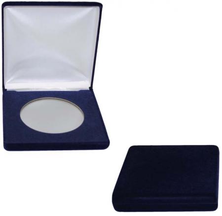 These boxes are wrapped with a blue velvet material and are manufactured with a hinged lid. Each box has a white satin cover pad, blue display card, reflector card and a white protective sleeve. The display card has a hole sized for a Y size Air-Tite holder.