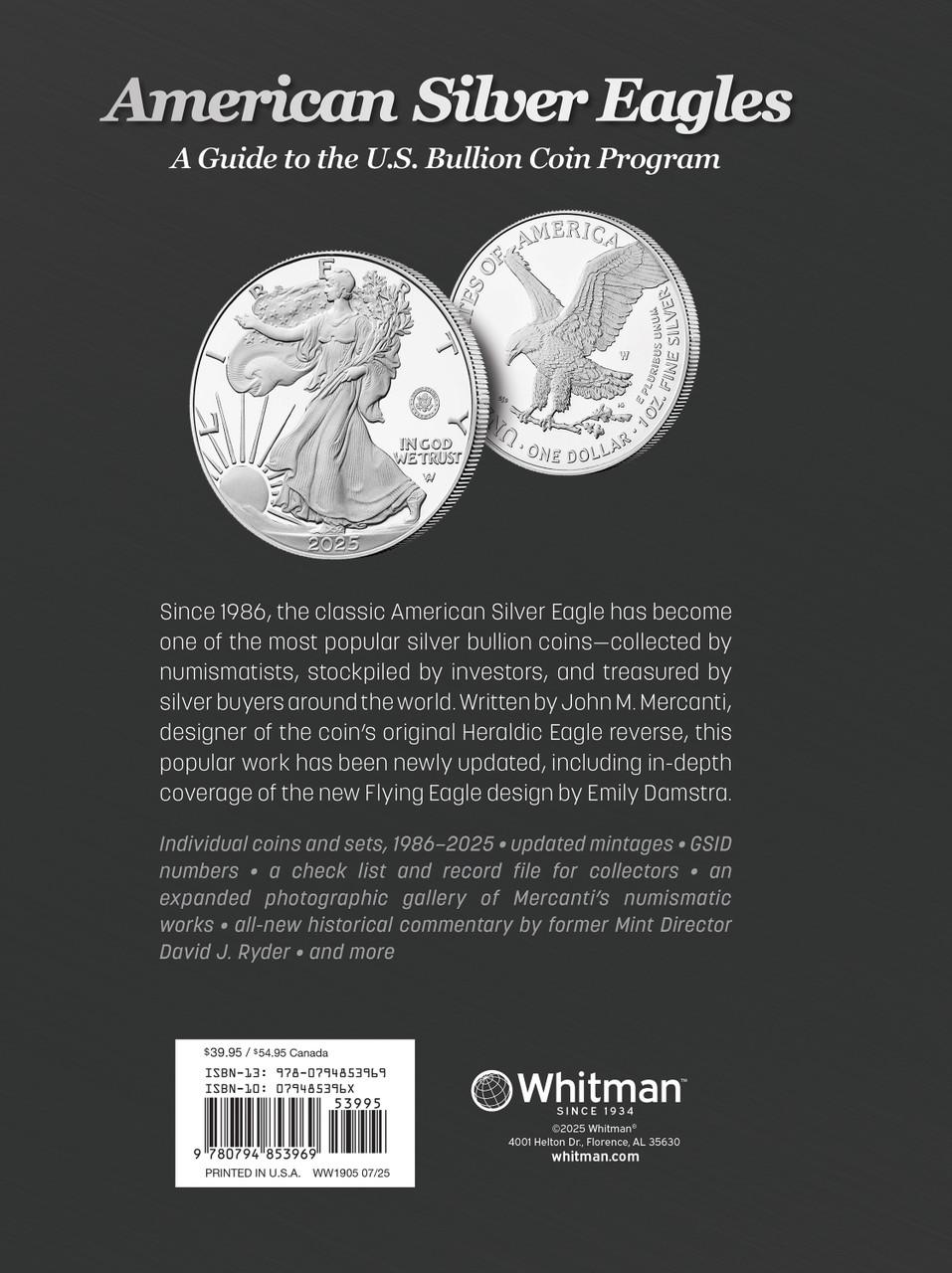 Since 1986, more than 673 million American Silver Eagles have been minted and sold, making them the most popular bullion coins in the history of the United States. These coins are treasured by collectors and investors around the world. Authors John M. Mercanti, former 12th Chief Engraver of the U.S. Mint, and David J. Ryder, former 34th and 39th Director of the U.S. Mint, bring to life the story of the Silver Eagle and help celebrate 40 years (1986-2026) of America’s favorite silver bullion coin.