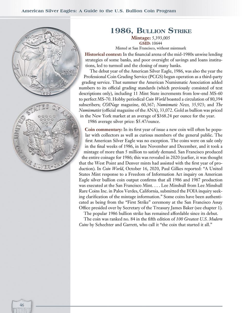 Collectors and investors alike will rejoice in the all-new fifth edition of Whitman’s best-selling American Silver Eagles: A Guide to the U.S. Silver Bullion Coin Program. The book is completely revised, featuring a new Foreword by David Ryder, new date-by-date analysis since 2021, fresh insights on the Type II redesign, updated mintages and specs, stunning images and artwork, and more.