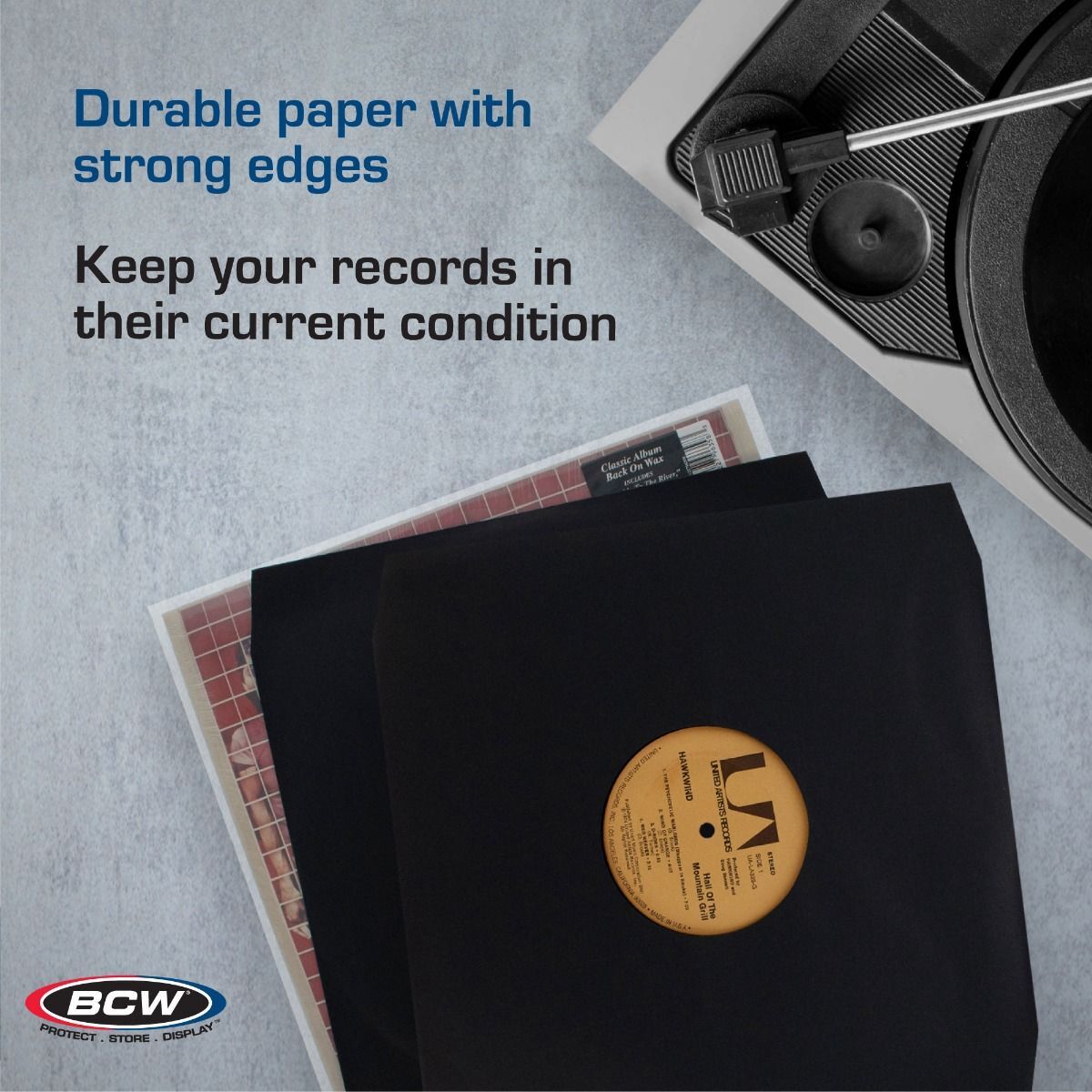 BCW 12-Inch Record Paper Inner Sleeve -- Cut Corners -- Black