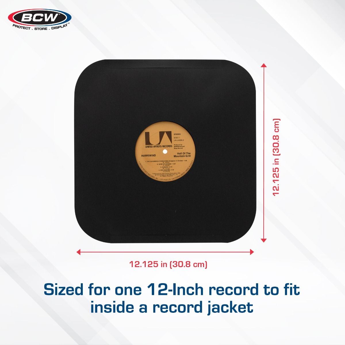 - Holds one 12-inch vinyl LP