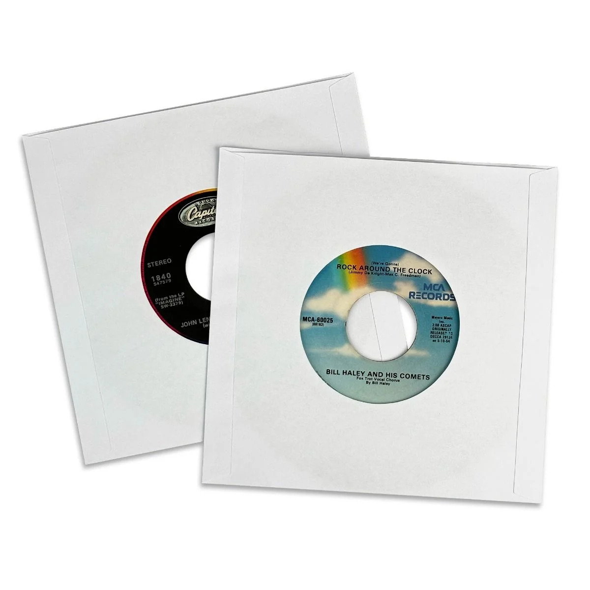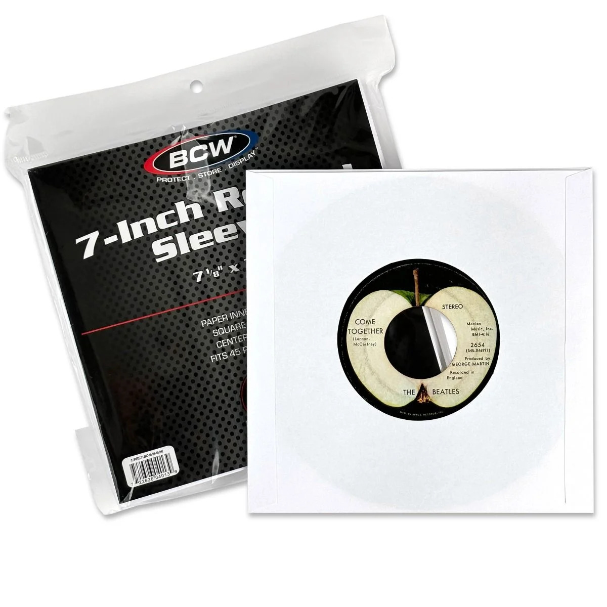 BCW 7-Inch Paper Record Inner Sleeves -- Square Corners -- With Hole -- White