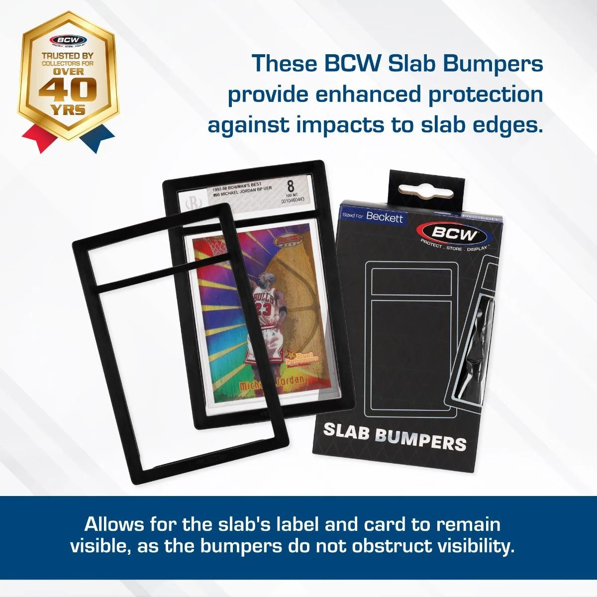 BCW Slab Bumpers are made from black durable, flexible silicone. They help protect not only the edges of your graded cards from chips and cracking but also the faces of your of your graded cards no longer rub against each other, keeping them in ideal, pristine condition. These are sized to fit standard BGS graded cards.