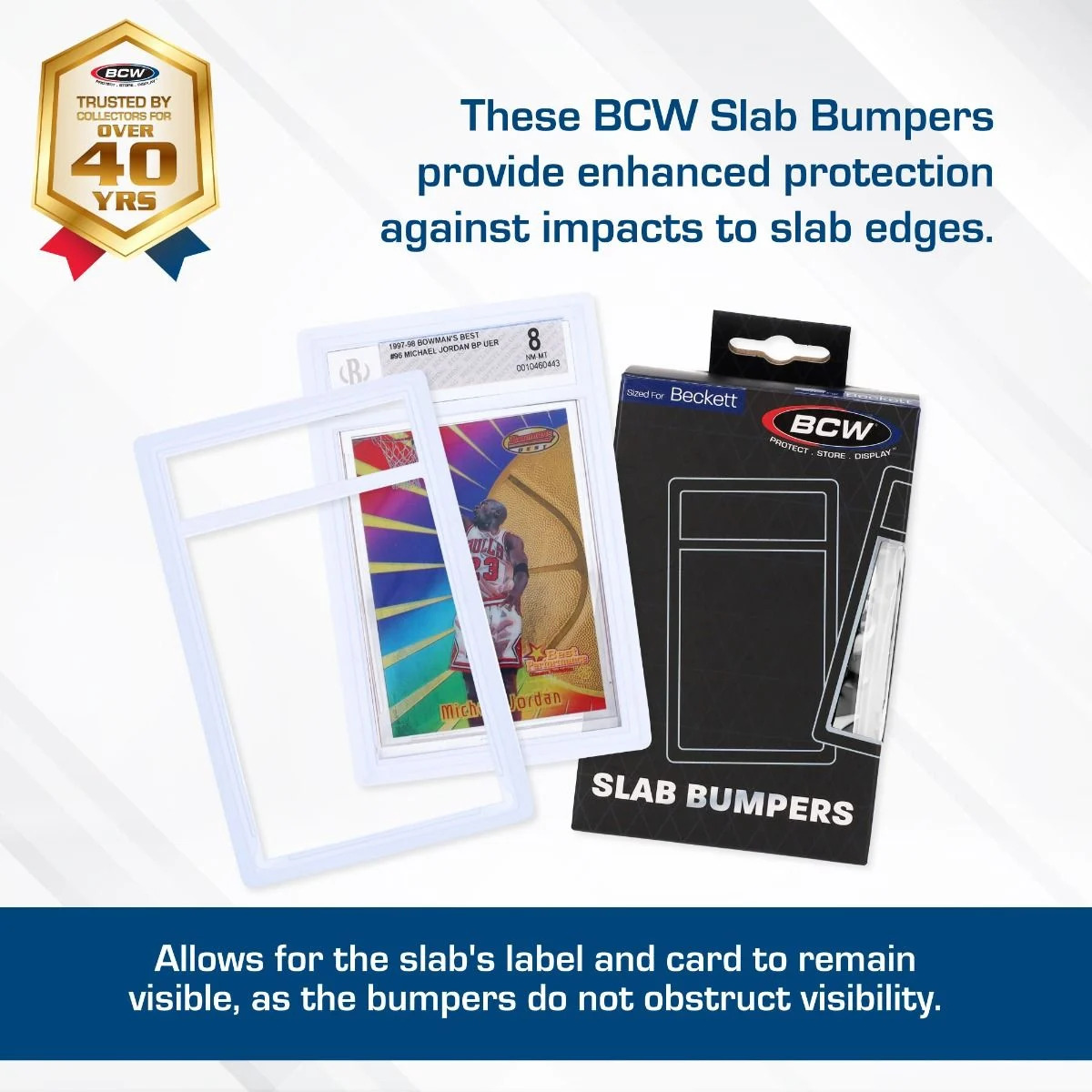 BCW Slab Bumpers are made from clear durable, flexible silicone. They help protect not only the edges of your graded cards from chips and cracking but also the faces of your of your graded cards no longer rub against each other, keeping them in ideal, pristine condition. These are sized to fit standard BGS graded cards.