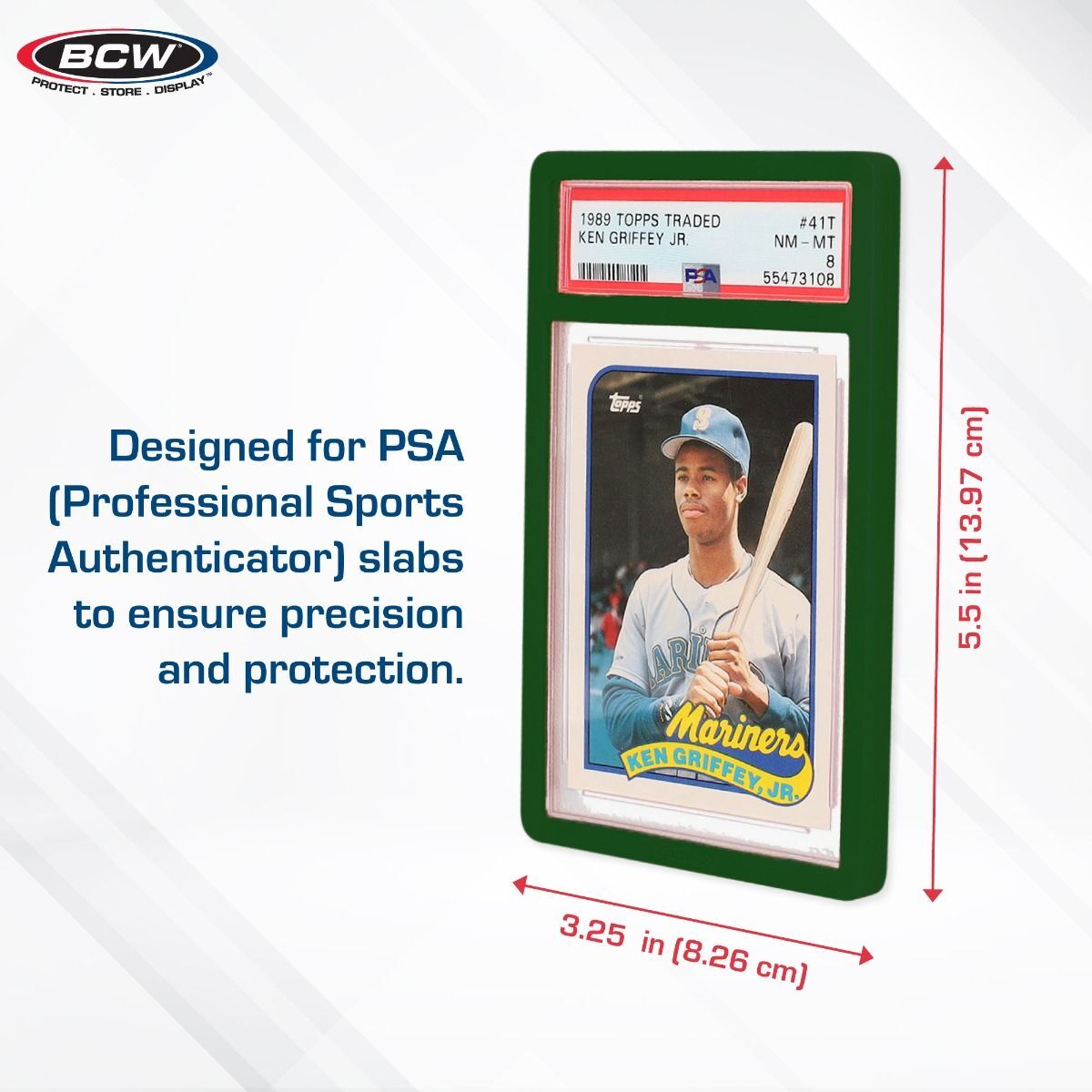 BCW Slab Bumpers are made from green durable, flexible silicone. They help protect not only the edges of your graded cards from chips and cracking but also the faces of your of your graded cards no longer rub against each other, keeping them in ideal, pristine condition. These are sized to fit standard PSA graded cards.