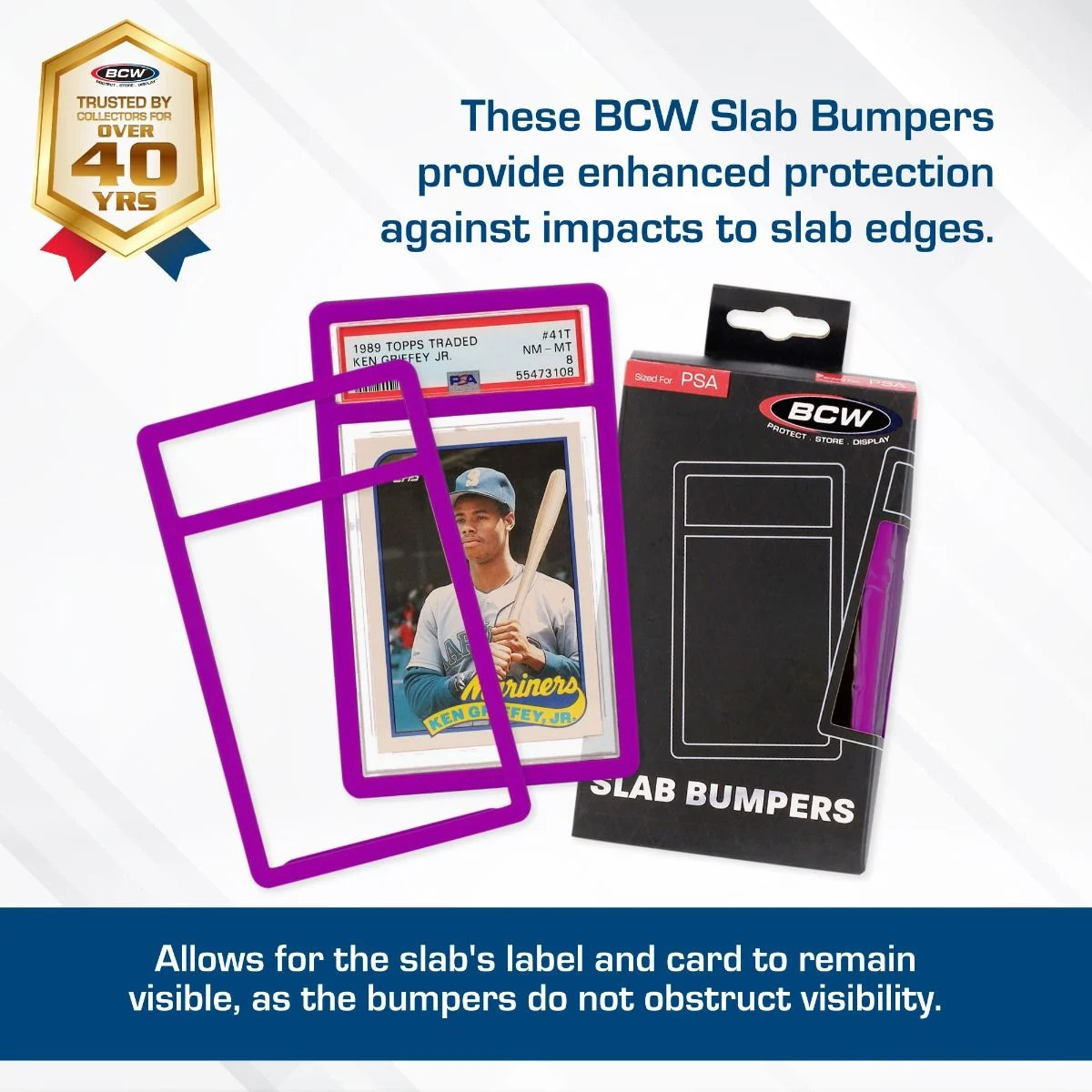 BCW Slab Bumpers are made from purple durable, flexible silicone. They help protect not only the edges of your graded cards from chips and cracking but also the faces of your of your graded cards no longer rub against each other, keeping them in ideal, pristine condition. These are sized to fit standard PSA graded cards.