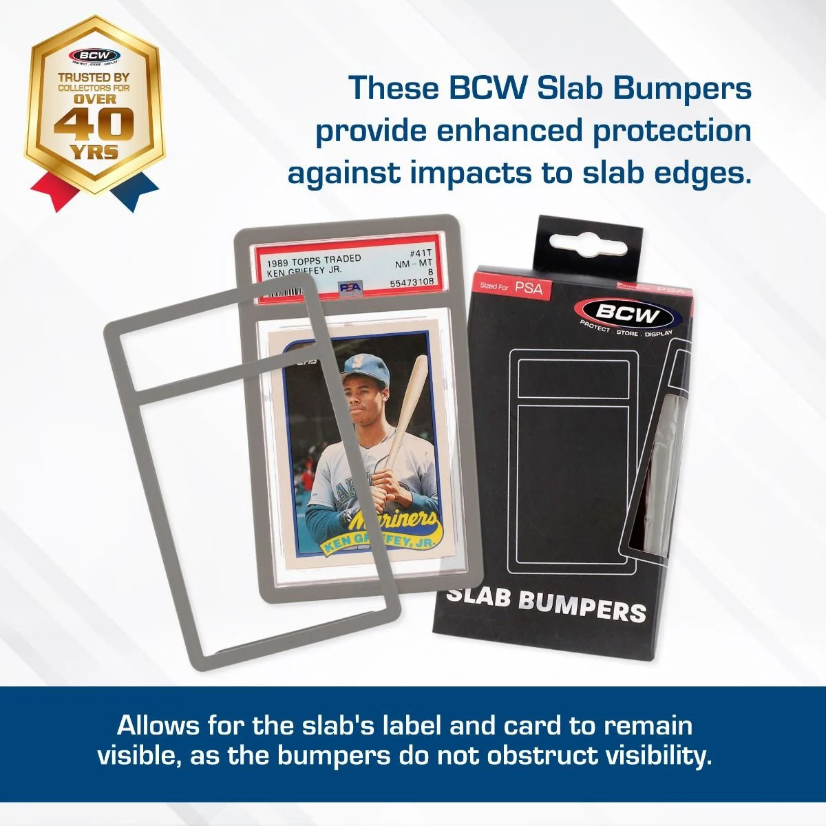 BCW Slab Bumpers are made from silver durable, flexible silicone. They help protect not only the edges of your graded cards from chips and cracking but also the faces of your of your graded cards no longer rub against each other, keeping them in ideal, pristine condition. These are sized to fit standard PSA graded cards.