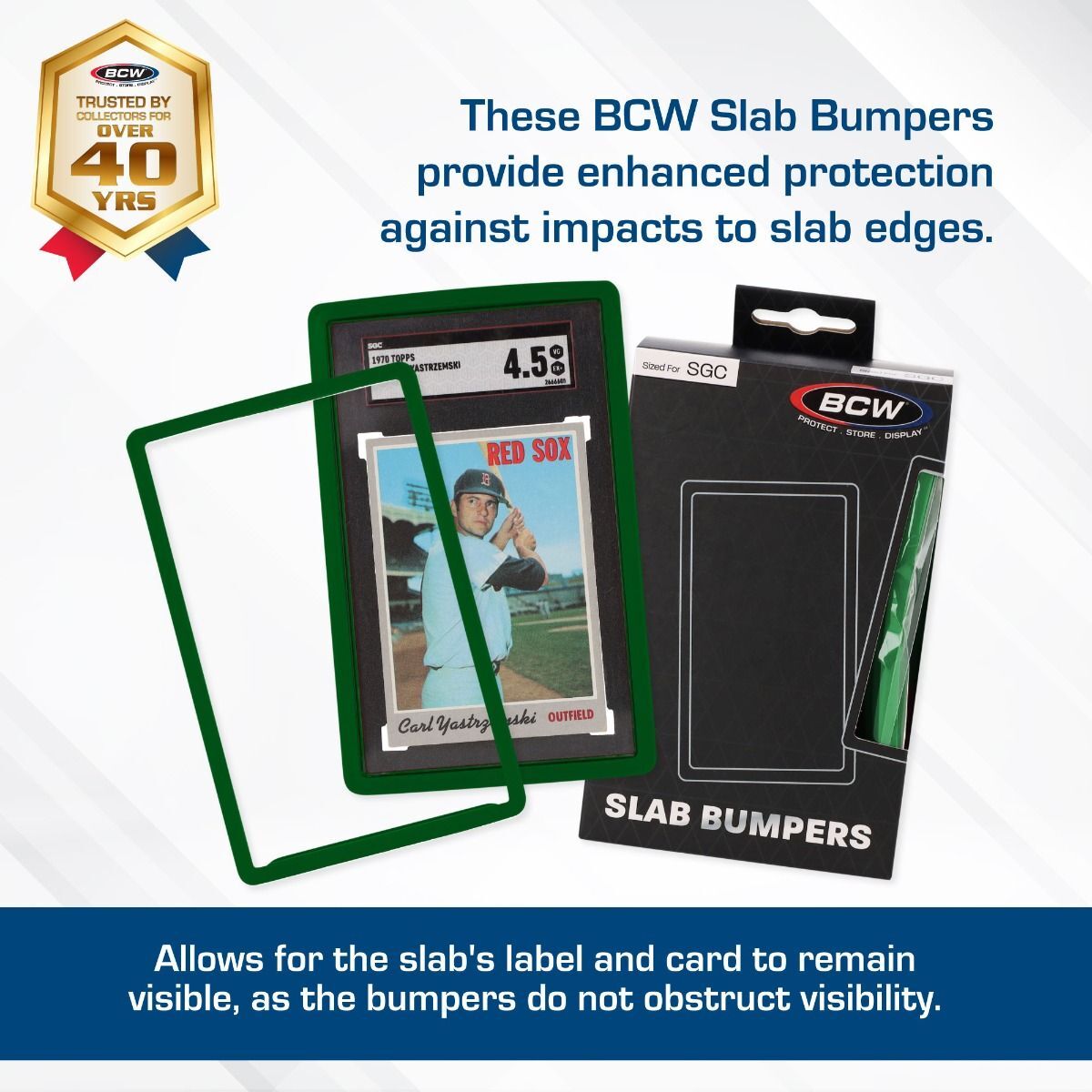 BCW Slab Bumpers are made from green durable, flexible silicone. They help protect not only the edges of your graded cards from chips and cracking but also the faces of your of your graded cards no longer rub against each other, keeping them in ideal, pristine condition. These are sized to fit standard SGC graded cards.