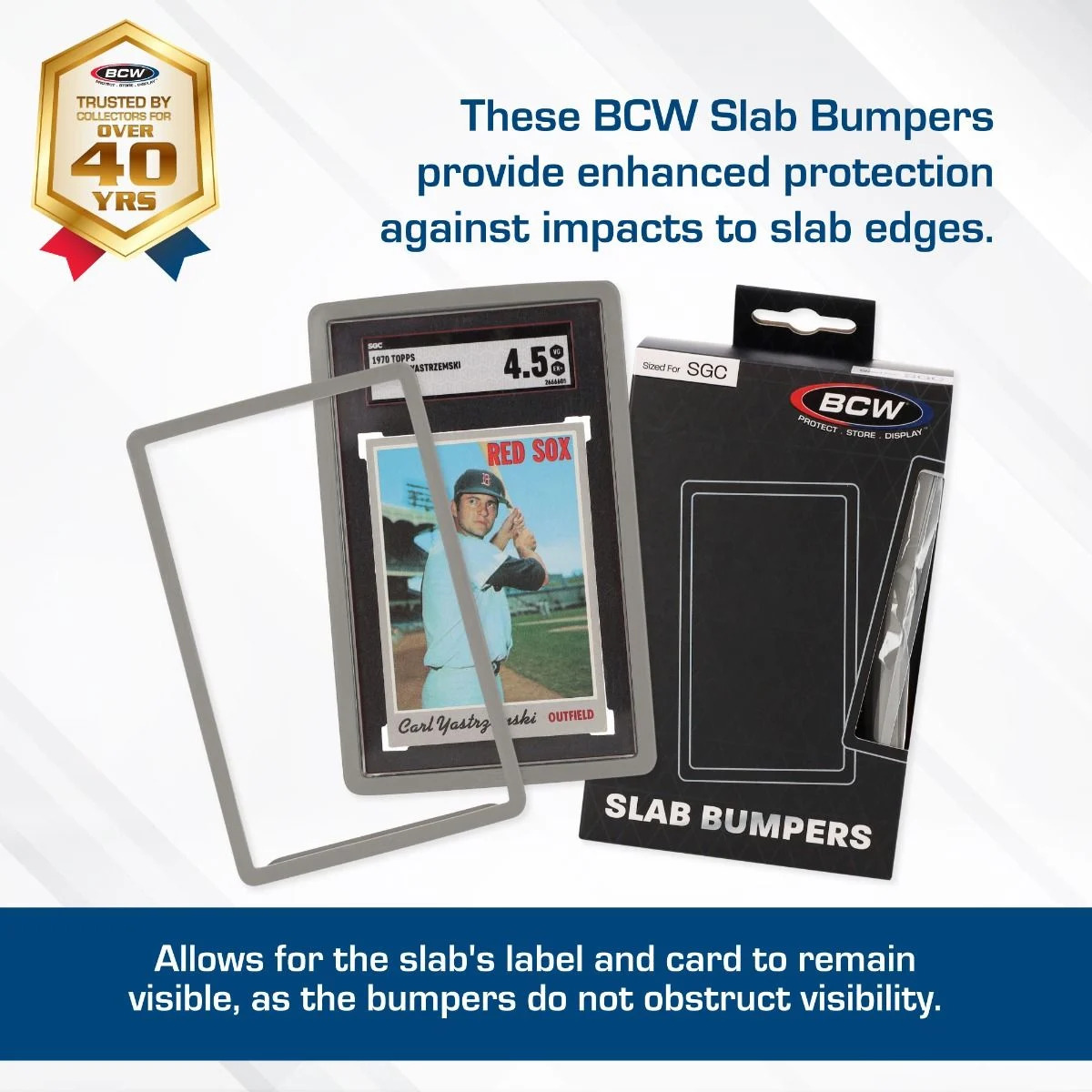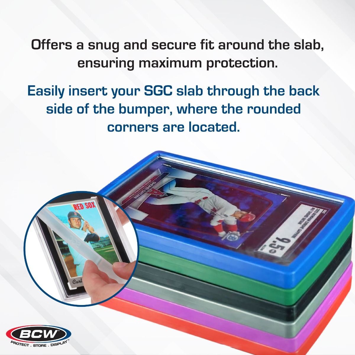 BCW Slab Bumpers are made from silver durable, flexible silicone. They help protect not only the edges of your graded cards from chips and cracking but also the faces of your of your graded cards no longer rub against each other, keeping them in ideal, pristine condition. These are sized to fit standard SGC graded cards.