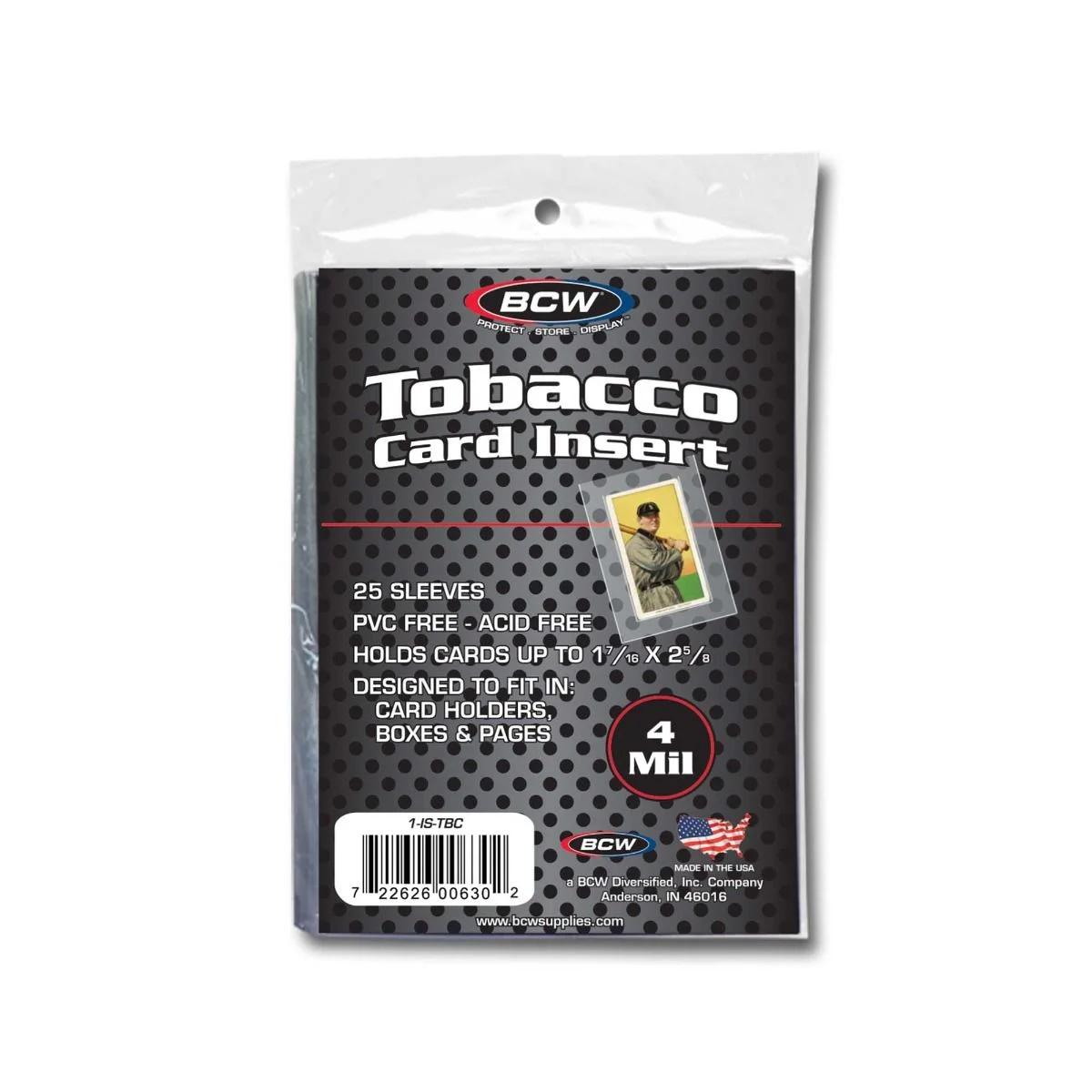These are designed to fit inside 9-pocket pages, screw-downs, magnetics, snaps, toploaders, and storage boxes. The BCW Tobacco Card Insert Sleeve is an acid-free, archival quality product that is designed for the safe long-term protection of your valuable collectible trading cards. This product features high-clarity polypropylene and an inner storage pocket with strong welds. BCW Tobacco Card Insert Sleeves fit standard 9-pocket pages and storage boxes. 25 insert sleeves per pack.