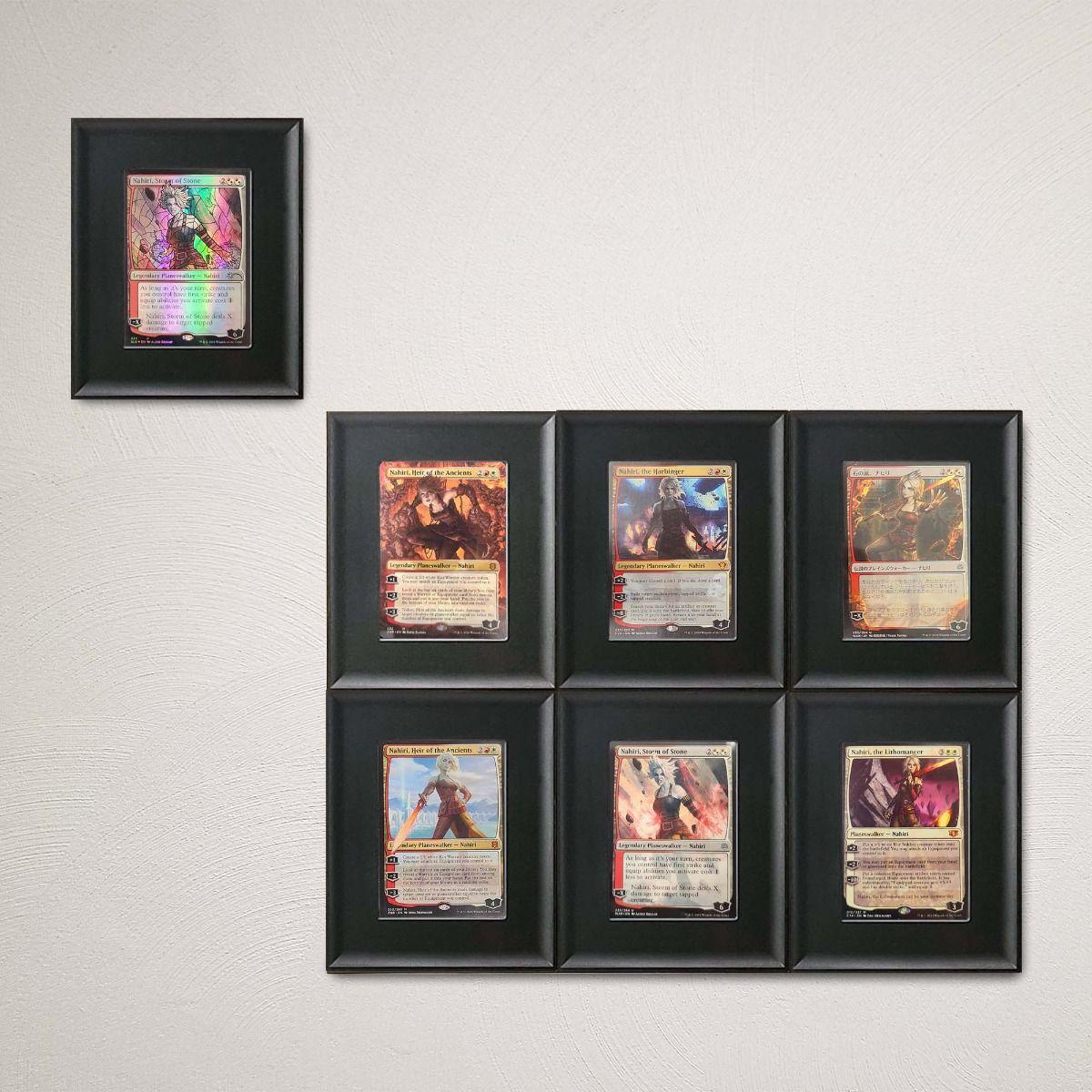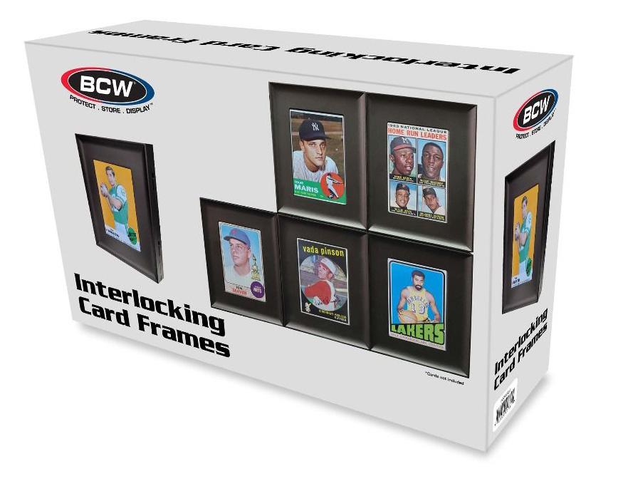 Each BCW Interlocking Card Frame has a black border and looks great individually, but it’s the interlocking system that makes these frames special. With the turn of two screws, each frame can connect with a neighboring frame, allowing you to form a grid for however many framed cards you want to display. The frames can be hung in a portrait or landscape orientation.
