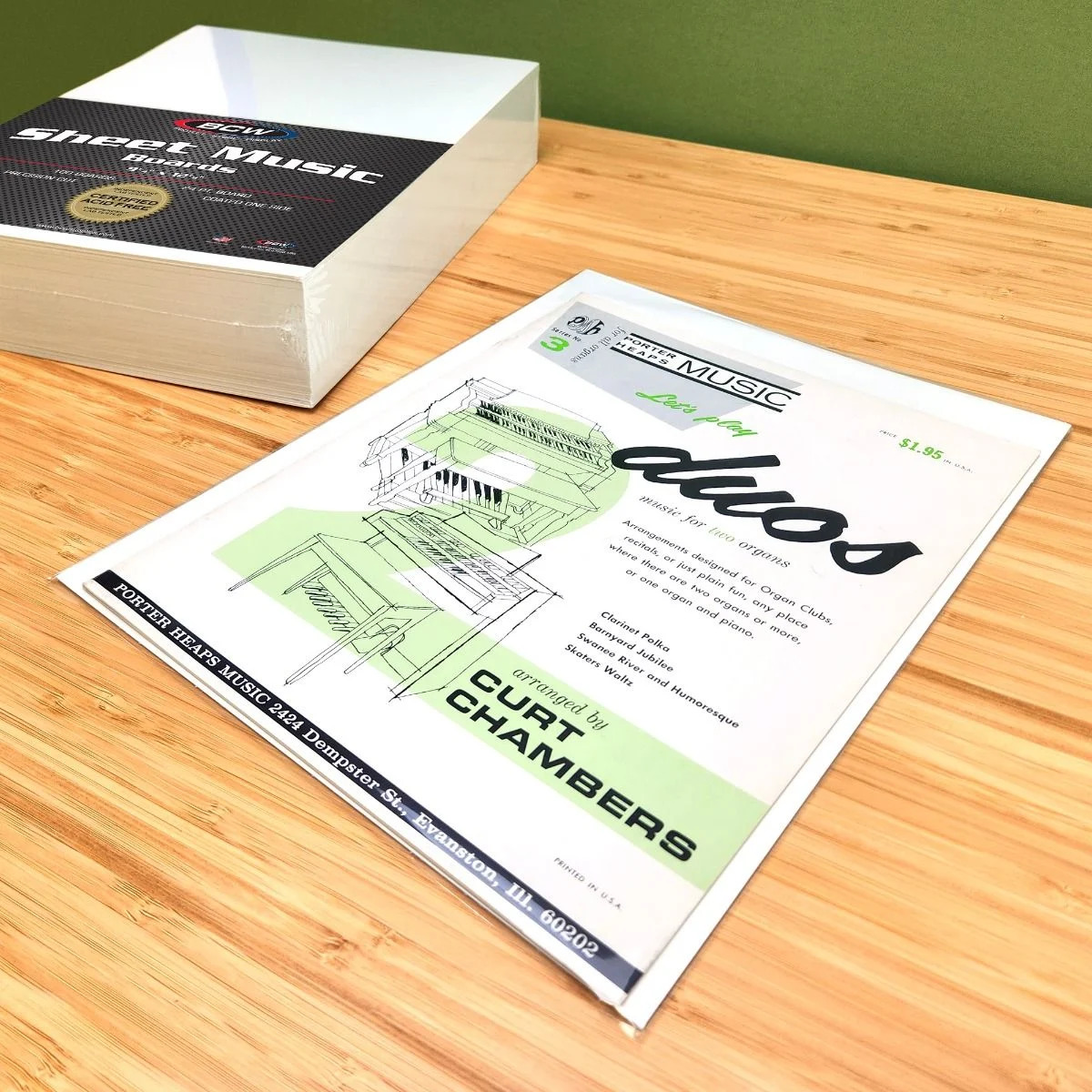 BCW Sheet Music Backing Boards are made from 24 point solid bleached sulfate, coated and buffered on one side with 3% calcium carbonate, and are precision cut to size. Use this item along with BCW Sheet Music Bags or BCW Sheet Music Sleeves to protect and store your collectible scores and songbooks.