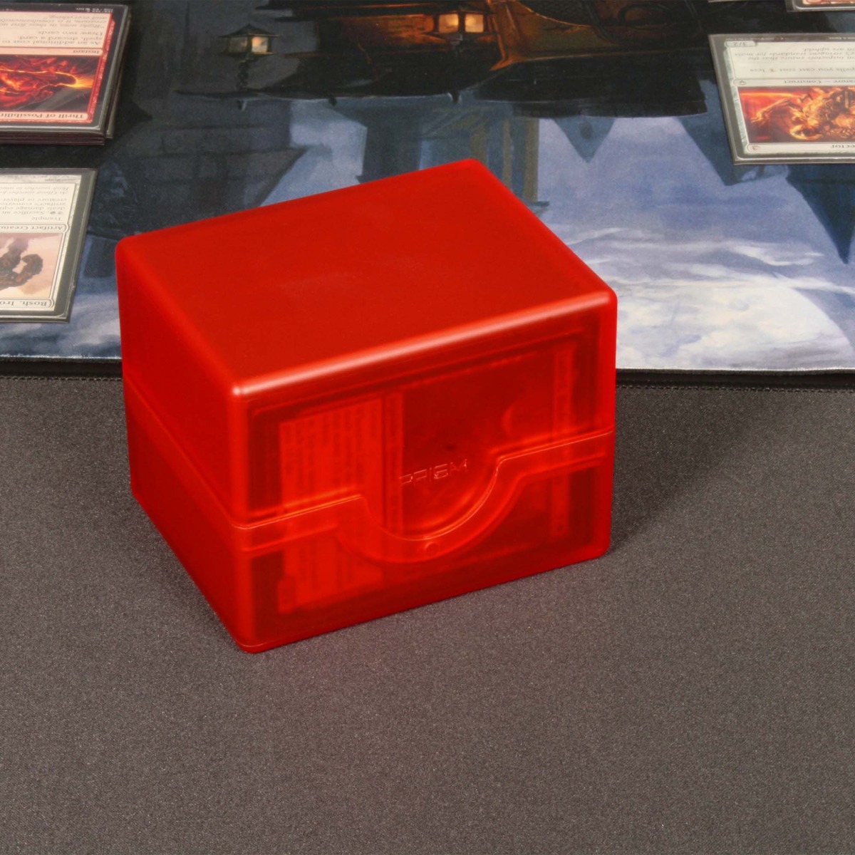 The Infra Red Prism Deck Cases are made of strong, translucent plastic, and have a matte shell. These boxes hold a deck of cards in a horizontal format, which makes it easy to remove the cards. The boxes have a secure snap closure, and squeeze to open. The fit will not allow the case to open accidentally, so cards stay safe during transport. Sized to hold 100 standard double-sleeved cards, the Prism cases are perfect for a variety of games, from Commander decks for Magic the Gathering, to constructed Flesh and Blood decks. Sturdy, colorful, and secure, the Prism cases will make a great addition to any ccg fan's arsenal.