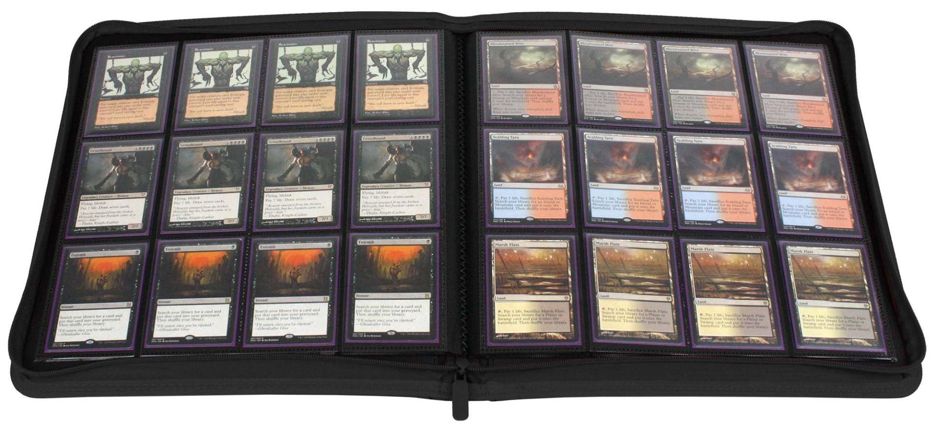 The BCW Z-Folio LX is a zippered portfolio that will accommodate 480 cards. It features a wrap-around zipper and a padded leatherette front and back cover with contrasting colored stitching — including a dark and mysterious black with vibrant red stitching. The Z-Folio LX has side-loading pockets that deter cards from sliding out of place, and the 12-pocket pages are ideal for arranging cards in playsets of three or four. You can use the Z-Folio LX for sports cards, trading cards or gaming cards, and it works with soft-sleeves, Deck Guards, and double-sleeved Deck Guards as well! Our premium, double-sided, archival-quality polypropylene pages offer a safe and attractive way to store and display your card collection. Get your BCW Z-Folio LX now and protect your cards with style!