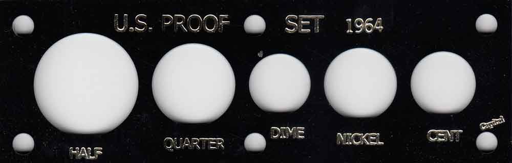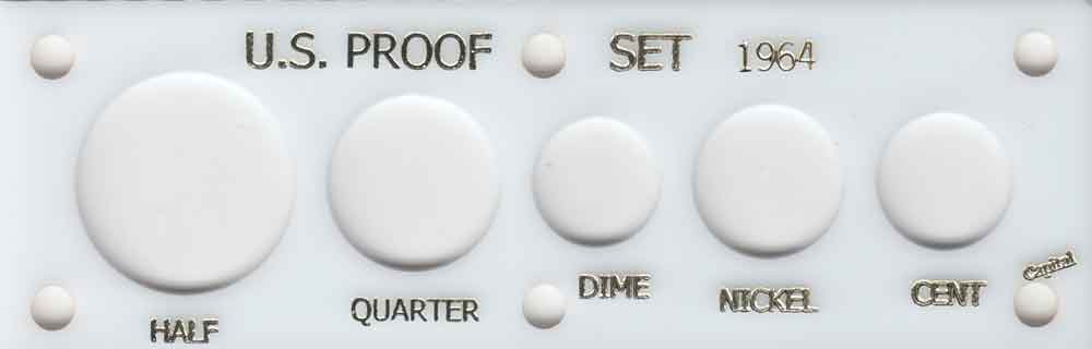 Capital Plastics offers the largest selection of premium coin holders of any available brand. This holder has five holes for a 1964 proof set (cent through half).